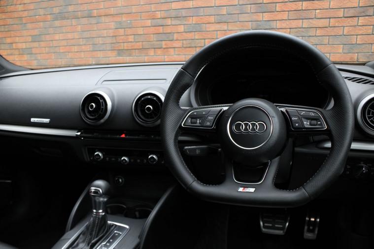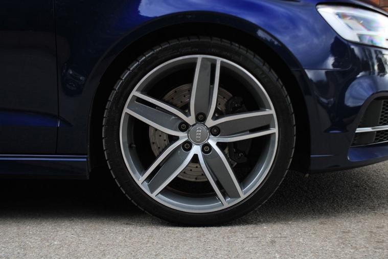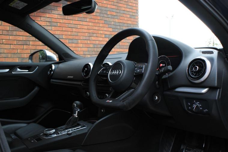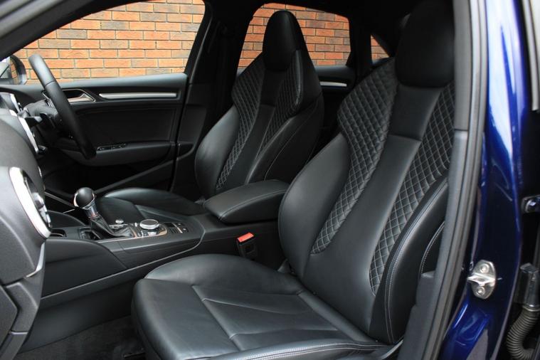 Finished in Navarra Blue metallic (£550) with full black fine Nappa leather interior. Features include panoramic glass sunroof (£1075), technology package (Audi virtual cockpit, MMI Navigation Plus & Audi phone box with wireless charging) (£995), Bang & Olufsen surround sound system (£495), super sport front seats (£650), 19” five arm wing design alloy wheels in titanium (£375), rear acoustic park distance control (£425), heated front seats with 4-way electric lumbar support (£250), digital dual zone climate control with automatic air conditioning, Audi Smartphone Interface, Bluetooth connectivity with media streaming, DAB digital radio, LED headlights with high beam assist (£150), rain sensor, cruise control, Audi drive select, Audi magnetic ride, heated electric folding exterior mirrors (£200), privacy glass (£375), dynamic rear indicators, matt brushed aluminium inlays, black brake calipers with S logo, illuminated S door sills, voice control, multifunctional flat bottomed leather steering wheel with paddleshift, automatic S Tronic transmission plus much more standard specification. This highly specified S3 has £5, 540 worth of options and is offered in excellent condition having covered 92000 miles from new. The car comes complete with a service history.