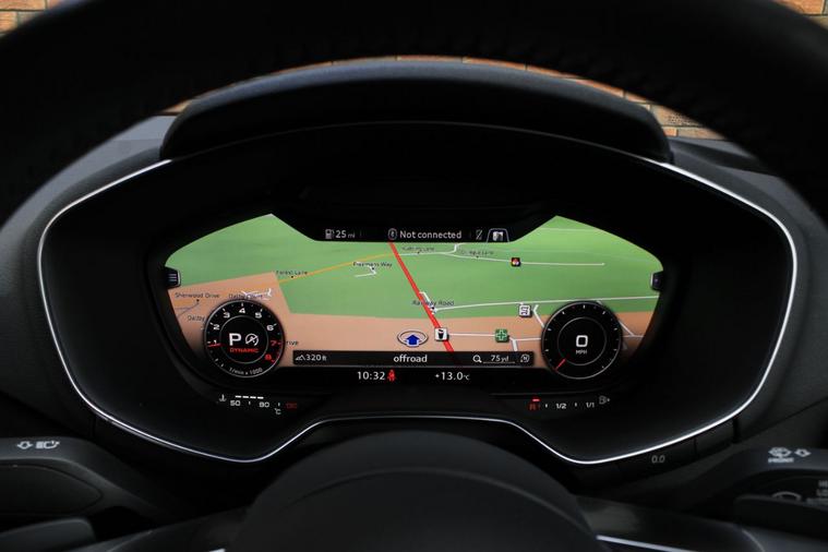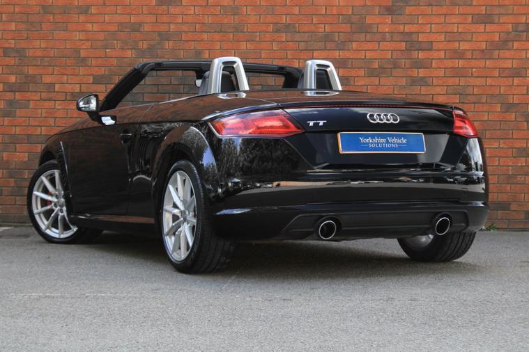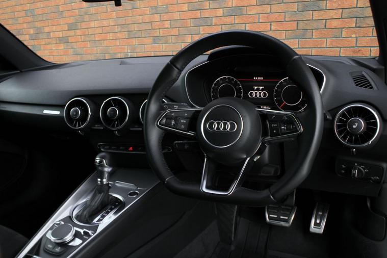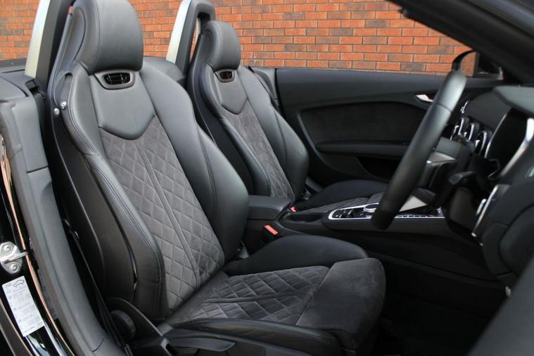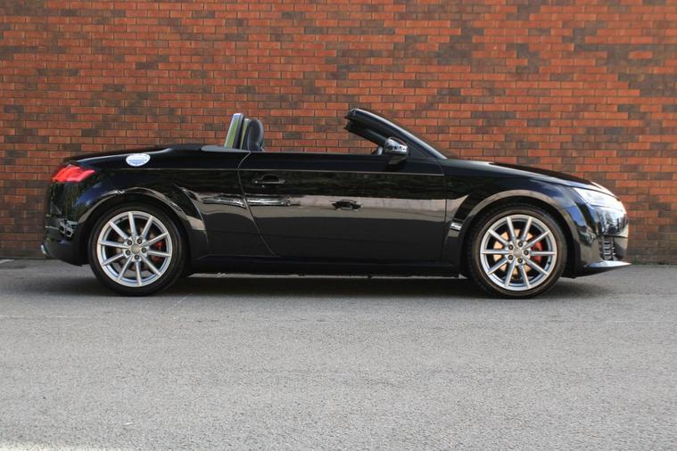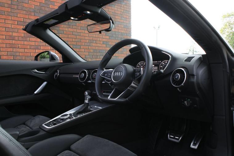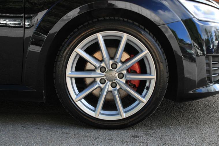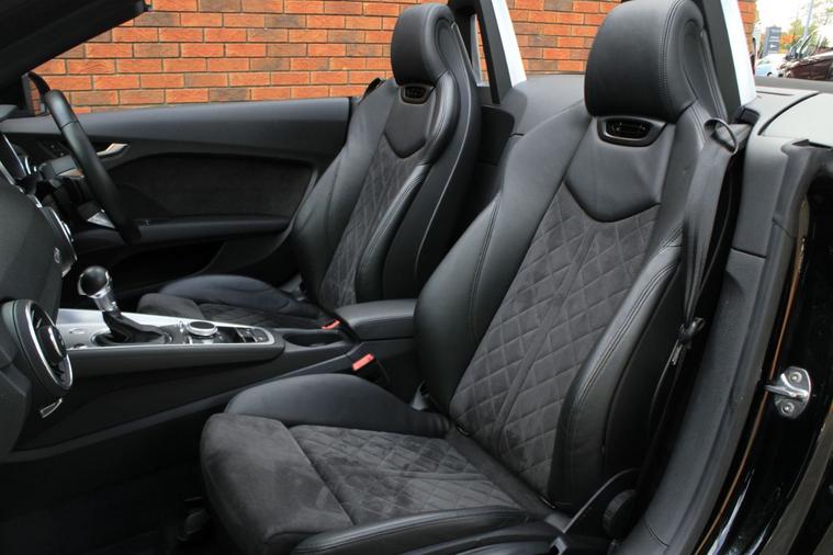 Finished in Brilliant Black with black leather and alcantara interior. Features include open top driving package (electric powered wind deflector, heated seats, head-level heating system & super sports seats) (£1695), technology package to include MMI Navigation Plus (£1490), Audi virtual cockpit, 18” ten spoke alloy wheels, Audi rear parking system (£430), air conditioning, Bluetooth connectivity with media streaming, DAB digital radio, xenon headlights with LED daytime running lights, rain sensor, cruise control, Audi drive select, active lane assist, heated electrically adjustable exterior mirrors, keyless start, aluminium drift silver inlays, retractable rear spoiler, red brake calipers, voice control, multifunctional leather steering wheel with paddleshift, automatic S Tronic transmission plus much more standard specification. This TT Sport is offered in excellent condition having covered 74400 miles from new by its 1 former keeper. The car comes complete with a comprehensive service history consisting of the following – 19/03/18 at 17543 miles, 12/09/19 at 35900 miles, 14/04/21 at 49429 miles and 02/06/23 at 63172 miles (including the cambelt and water pump replacement).