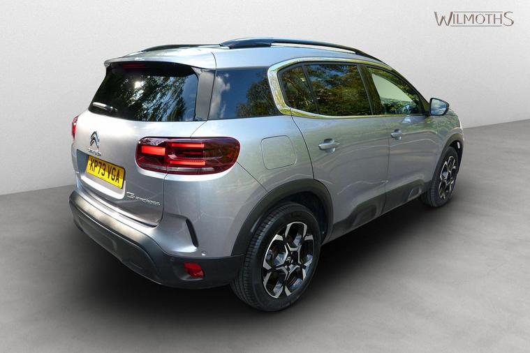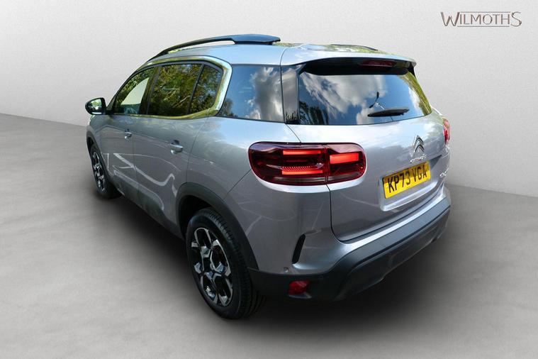 This 2023 Citroen C5 Aircross Shine is a pristine example, having had only one owner since new. It is powered by an efficient 1.2 litre petrol engine, meeting Euro 6 emissions standards. The Shine trim level ensures a premium experience, enhanced by automatic LED headlights that welcome you and provide goodbye lighting. Inside, you'll find a 10 inch touchscreen with Bluetooth connectivity, and an acoustic laminated windscreen that automatically adjusts for rain and brightness.This C5 Aircross boasts impressive practicality, offering substantial boot space for all your needs. Its fuel economy is a notable highlight, achieving up to 46 miles per gallon, which indicates its efficiency compared to similar vehicles. For effortless manoeuvring, it includes the City Camera Pack, featuring front and rear parking sensors along with a rear parking camera, making parking in urban environments significantly easier.
