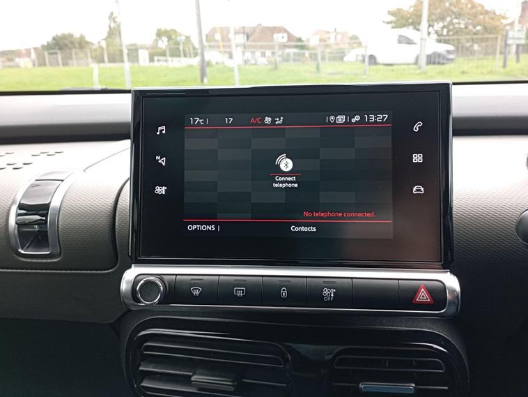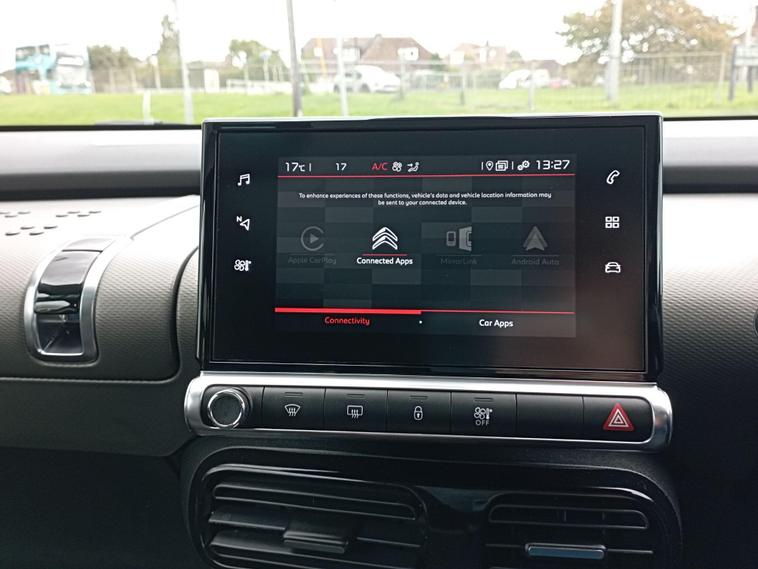 This 2019 Citroen C4 Cactus Flair is a well presented example of this distinctive hatchback. Powered by a responsive 1.2 litre petrol engine, it meets Euro 6 emissions standards, contributing to its low CO2 emissions. The Flair trim level ensures a generous array of notable features, including Bluetooth handsfree and media streaming for seamless connectivity, and the Mirror Screen system which supports both Android Auto and Apple CarPlay. For added convenience and safety, it boasts the City Camera Pack with front and rear parking sensors and a rear camera, alongside the Auto Pack which includes automatic climate control and automatic headlights. Keyless entry and start further enhance the user experience.The Citroen C4 Cactus Flair offers practical benefits, including a large boot space perfect for shopping trips or luggage. Its performance is also noteworthy, with an acceleration of 0 to 62mph achieved in a brisk 8.6 seconds. These highlights indicate how this particular vehicle offers a superior driving and ownership experience compared to similar models, combining efficiency, technology, and practicality in a stylish package.