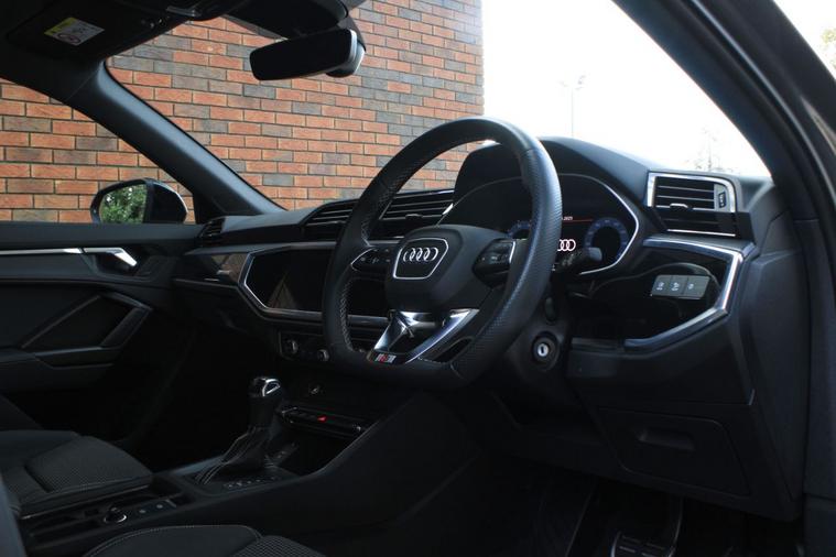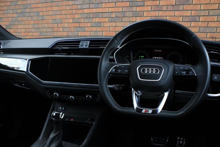 Finished in Chronos Grey metallic with black leather and pulse cloth interior. Features include Audi virtual cockpit, black styling package, Audi Smartphone Interface with wireless Apple CarPlay, MMI Navigation Plus, 19” diamond turned five twin-arm design alloy wheels, rear acoustic park distance control, S embossed front sport seats, digital dual zone climate control with automatic air conditioning, Bluetooth connectivity with media streaming, DAB digital radio, automatic LED headlights with dynamic rear indicators, rain sensor, cruise control, Audi drive select, traffic sign recognition, lane departure warning, heated electric folding exterior mirrors, rear privacy glass, piano black inlays, voice control, electric tailgate, multifunctional flat bottomed leather steering wheel with paddleshift, automatic S Tronic transmission plus much more standard specification. This Q3 Black Edition 45 TFSIe is offered in excellent condition having covered 72600 miles from new by its 1 former keeper. The car comes complete with a service history consisting of the following 09/03/2023 at 25725 miles and 12/09/2024 at 54981 miles.