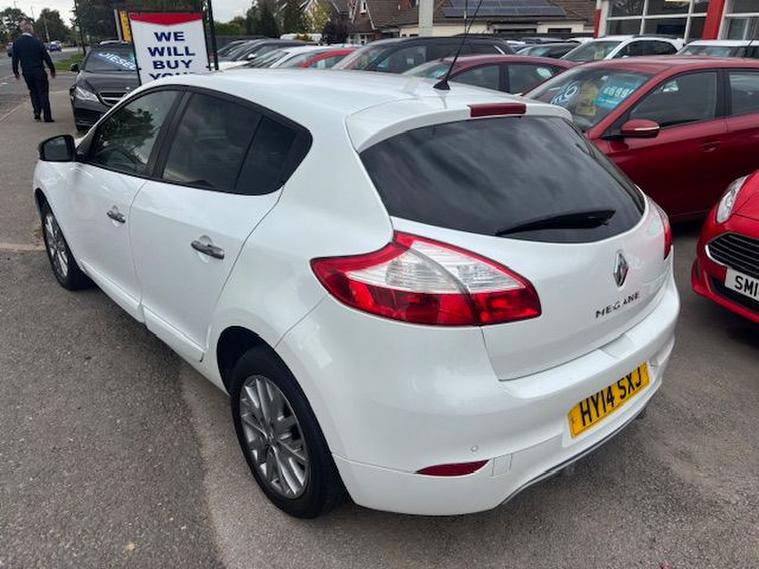 RENAULT MEGANE 1.6VVT KNIGHT EDITION FINISHED IN WHITE METALLIC WITH CONTRASTING BLACK CLOTH SEATING REMOTE CENTRAL LOCKING POWER STEERING ELECTRIC WINDOWS ELECTRIC FOLDING MIRRORS CD PLAYER WITH BLUETOOTH CONNECTIVITY CRUISE CONTROL AND SPEED LIMITER AIR CONDITIONING ALLOY WHEELS AND REAR PARKING SENSORS