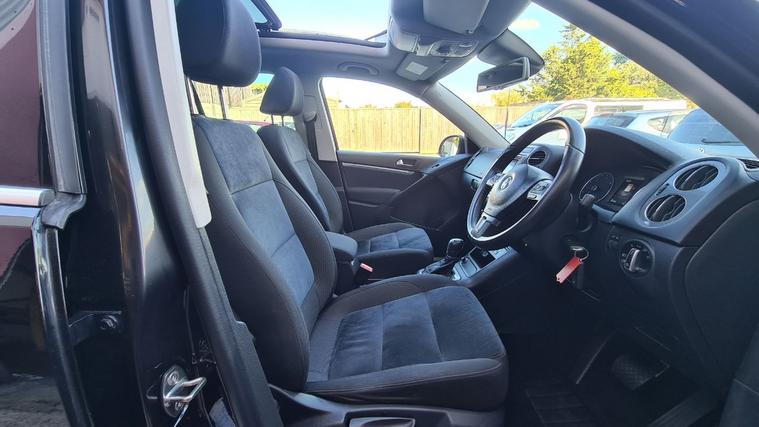 *LOW MILEAGE*FULL VW SERVICE HISTORY*SAT NAV*ELECTRIC PAN ROOF*PARKING CAMERA + FRONT & REAR SENSORS*CRUISE CONTROL*This Volkswagen Tiguan TDI Match from 2015 presents an exceptional ownership proposition, boasting a single owner from new and a remarkably low mileage of just 57, 000 miles. This well maintained example features a robust 2.0 litre diesel engine paired with Four Wheel Drive, ensuring capable performance in various conditions. It meets Euro 6 emissions standards and has a full dealership service history, with a clear vehicle history check confirming its excellent provenance. Notable features include a desirable panoramic sunroof, offering an open and airy cabin experience, and a rear view camera to aid with parking.The Tiguan TDI Match is a practical choice, offering a substantial towing weight of 2200 kg. Its low insurance group rating further enhances its appeal as an economical option. These factors, combined with its single owner status, comprehensive service record, and low mileage, clearly set this particular Tiguan apart from others you might find on the market, making it a compelling proposition for any discerning buyer.