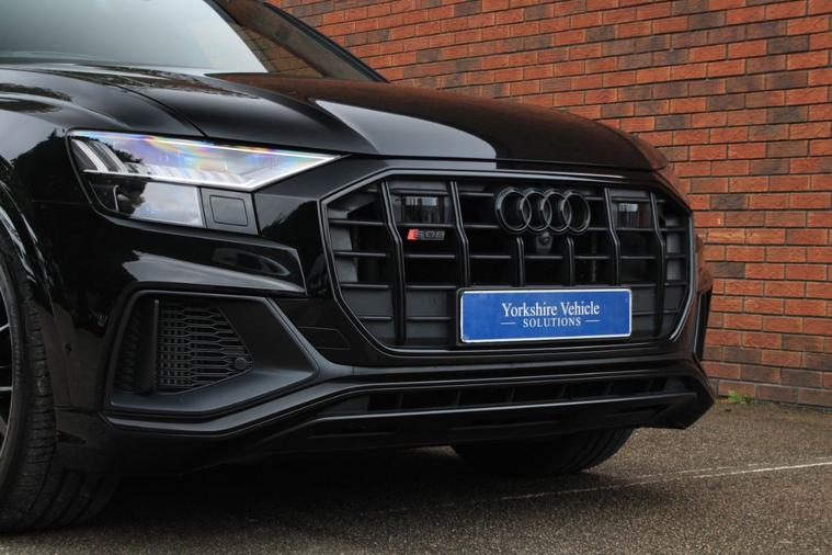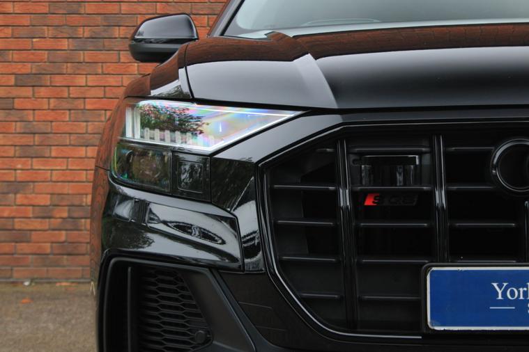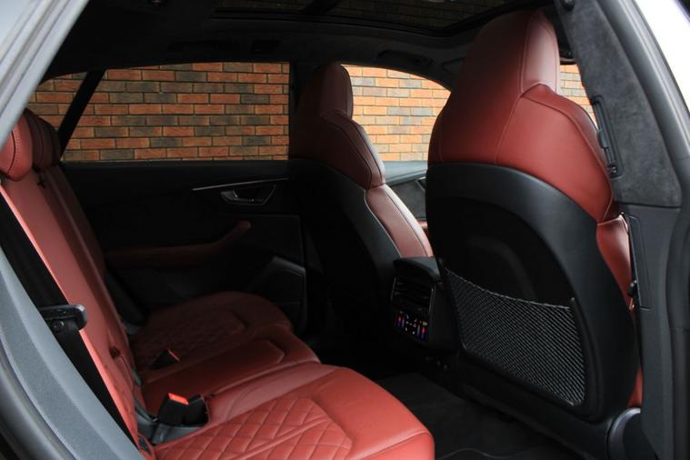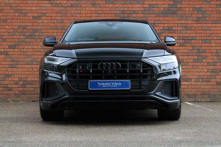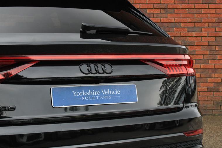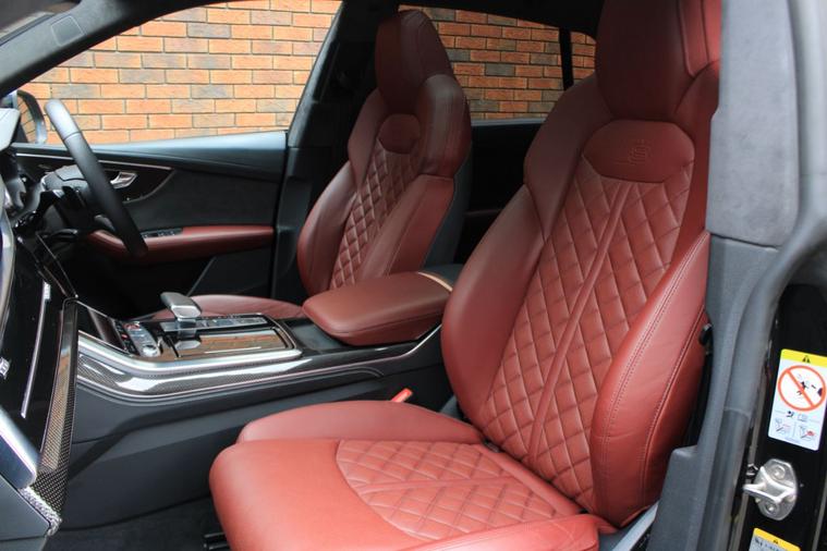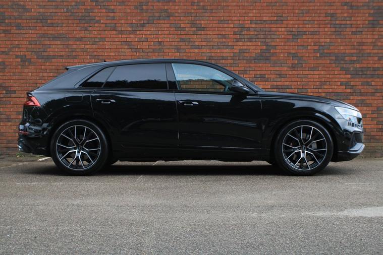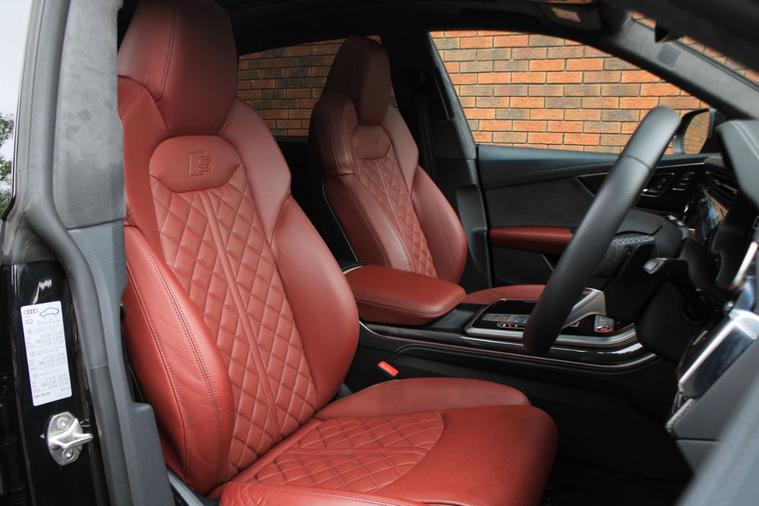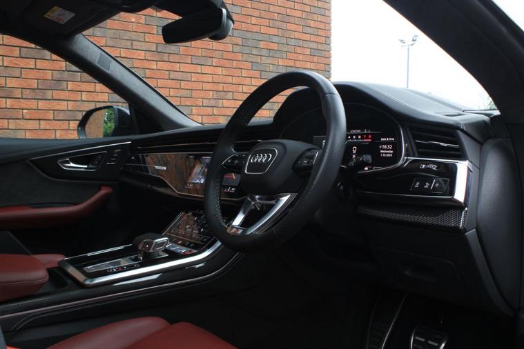 Finished in Mythos Black metallic with full Arras Red Valcona leather interior. Features include sliding panoramic glass sunroof with powered sunblind, head-up display, Audi virtual cockpit plus, Bang & Olufsen premium sound system, MMI Navigation Plus, heated steering wheel, 22” 5 V-spoke star design alloy wheels with gloss black finish, 360-degree park distance control with 360-degree cameras, park assist, heated and ventilated front super sport seats with memory and massage function, deluxe four zone climate control with automatic air conditioning, heated outer rear seats, Audi Smartphone Interface, Bluetooth connectivity with media streaming, DAB digital radio, HD Matrix LED headlights with dynamic front and rear indicators, rain sensor, adaptive cruise assist, tour pack, city assist pack, adaptive air suspension with Audi drive select, Quattro sports differential, all-wheel steering, heated electric folding exterior mirrors, privacy glass, Audi advanced key, soft close doors, carbon vector inlays, titanium black styling pack, extended interior ambient lighting pack, heat insulated windscreen, black brake calipers with S logo, illuminated S door sills, voice control, electric tailgate, multifunctional leather steering wheel with paddleshift, automatic Tiptronic transmission plus much more standard specification. This SQ8 Vorsprung is offered in excellent condition having covered 37400 miles from new by its 1 former keeper. The car comes complete with a full Audi