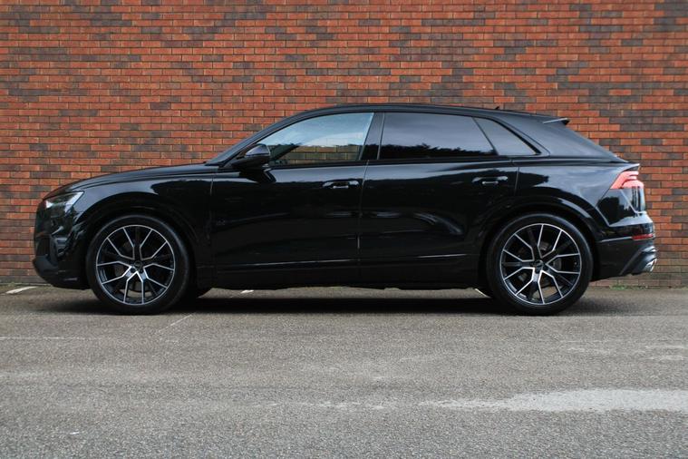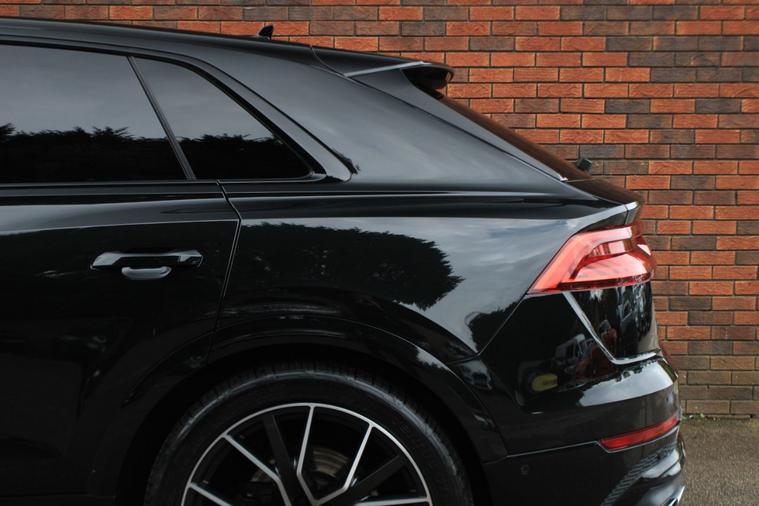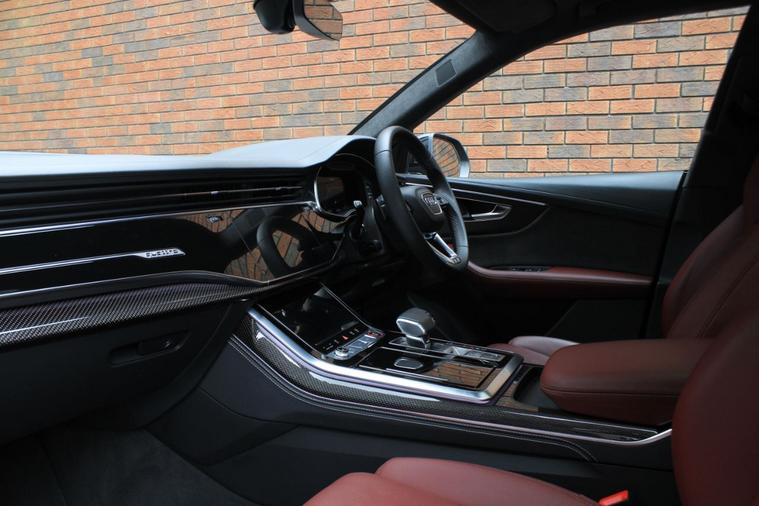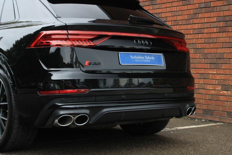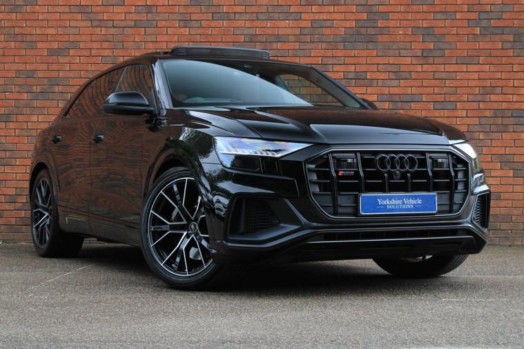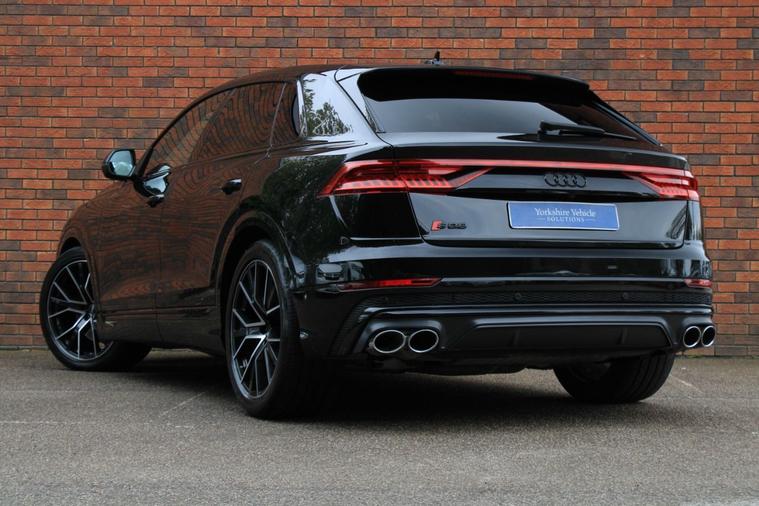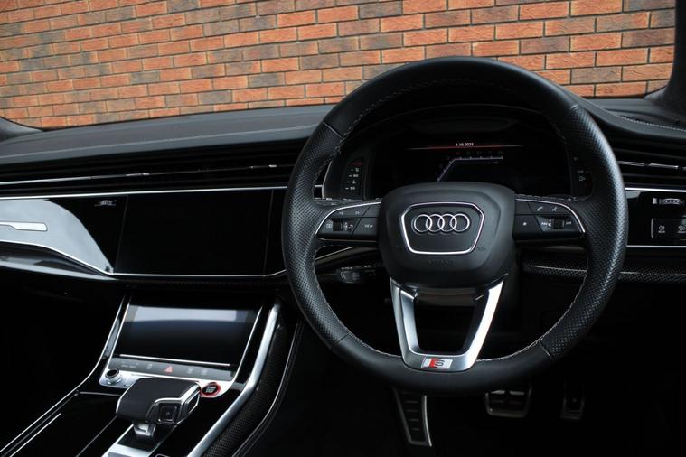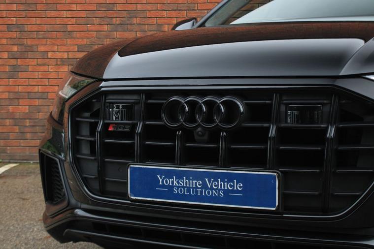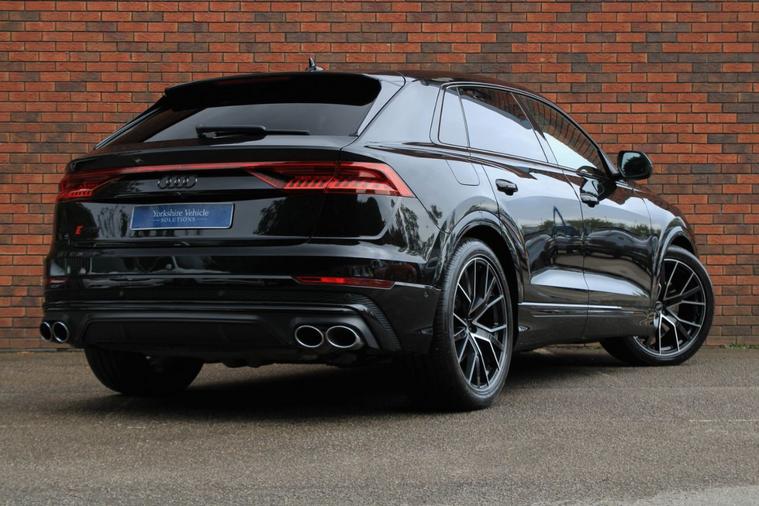 Finished in Mythos Black metallic with full Arras Red Valcona leather interior. Features include sliding panoramic glass sunroof with powered sunblind, head-up display, Audi virtual cockpit plus, Bang & Olufsen premium sound system, MMI Navigation Plus, heated steering wheel, 22” 5 V-spoke star design alloy wheels with gloss black finish, 360-degree park distance control with 360-degree cameras, park assist, heated and ventilated front super sport seats with memory and massage function, deluxe four zone climate control with automatic air conditioning, heated outer rear seats, Audi Smartphone Interface, Bluetooth connectivity with media streaming, DAB digital radio, HD Matrix LED headlights with dynamic front and rear indicators, rain sensor, adaptive cruise assist, tour pack, city assist pack, adaptive air suspension with Audi drive select, Quattro sports differential, all-wheel steering, heated electric folding exterior mirrors, privacy glass, Audi advanced key, soft close doors, carbon vector inlays, titanium black styling pack, extended interior ambient lighting pack, heat insulated windscreen, black brake calipers with S logo, illuminated S door sills, voice control, electric tailgate, multifunctional leather steering wheel with paddleshift, automatic Tiptronic transmission plus much more standard specification. This SQ8 Vorsprung is offered in excellent condition having covered 37400 miles from new by its 1 former keeper. The car comes complete with a full Audi