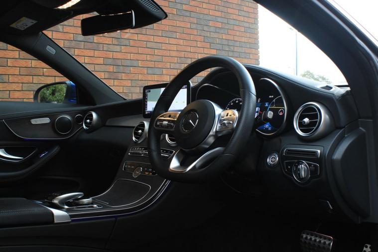 Finished in Brilliant Blue metallic (£685) with black leather and dinamica interior. Features include 12.3” digital instrument cluster, 19” AMG five twin spoke alloy wheels with gloss black finish, Apple CarPlay and Android Auto, satellite navigation, front and rear park distance control with rear view camera, heated front sport seats with electric adjustment, digital dual zone climate control with automatic air conditioning, Bluetooth connectivity with media streaming, DAB digital radio, Multibeam LED headlights, rain sensor, cruise control, dynamic select, agility control sports suspension, brake assist, attention assist, electric folding exterior mirrors, privacy glass (£385), keyless start, wireless phone charging, grey oak open-pore interior trim (£195), interior ambient lighting, illuminated Mercedes door sills, voice control, multifunctional leather steering wheel with paddleshift, automatic transmission plus much more standard specification. This C220d (Premium) is offered in excellent condition having covered only 31200 miles from new. The car comes complete with a full Mercedes Benz main dealer and specialist service history consisting of the following 02/08/2019 at 5094 miles, 07/08/2020 at 8831 miles, 12/07/2021 at 10557 miles, 07/07/2023 at 18119 miles and 05/07/2024 at 22571 miles.