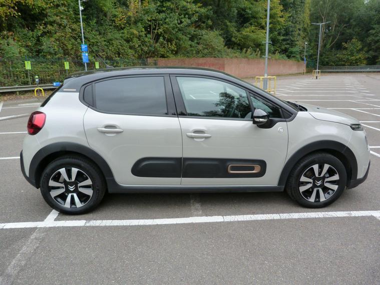 The Citroën C3 is a stylish and versatile supermini car that embodies the French automaker's modern design language and commitment to comfort and innovation. Here is a more detailed description:Exterior Design: The Citroën C3 exhibits a bold and contemporary exterior design characterised by its expressive lines, distinctive lighting signatures, and distinctive features such as the signature Citroën Airbump panels, which not only provide a unique look but also offer protection from minor impacts. The C3's playful and dynamic styling sets it apart in the competitive supermini segment, making it a popular choice among drivers looking for a distinctive and modern compact car.Interior Comfort and Design: Inside, the Citroën C3 offers a spacious and stylish cabin designed with a focus on comfort and versatility. The interior showcases Citroën's commitment to providing a welcoming and ergonomic environment for both the driver and passengers. The use of high-quality materials, customisable colour schemes, and practical storage solutions contribute to the C3's appeal as a practical and enjoyable car for everyday use.Technological Features: The C3 incorporates modern technological features aimed at enhancing convenience, connectivity, and safety. This includes options such as an intuitive touchscreen infotainment system, smartphone integration, advanced driving aids, and Citroën's innovative comfort-focused technologies, such as the Citroën Advanced Comfort seats and suspension