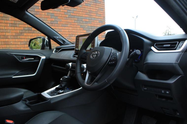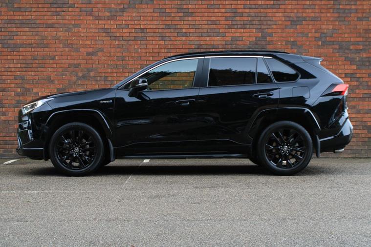 Finished in Galaxy Black metallic with black and grey dynamic sports synthetic leather interior. Features include Apple CarPlay and Android Auto, satellite navigation, JBL premium sound system, 19” five twin spoke alloy wheels finished in gloss black, front and rear park distance control with surround view cameras, heated front seats with driver electric adjustment, digital dual zone climate control with automatic air conditioning, Bluetooth connectivity with media streaming, DAB digital radio, automatic LED headlights with LED daytime running lights, rain sensor, adaptive cruise control, blind spot monitor, road sign assist, lane trace assist with lane departure warning, electric folding exterior mirrors, rear privacy glass, keyless entry, side steps, roof rails including roof bars, voice control, electric tailgate, multifunctional leather steering wheel, automatic transmission plus much more standard specification. This RAV4 is offered in excellent condition having covered 36500 miles from new by its 1 former keeper. The car comes complete with a service history consisting of the following 13/06/2022 at 6334 miles, 18/05/2023 at 15259 miles, 19/01/2024 at 21788 miles and 15/10/2025 at 36472 miles.