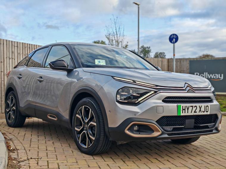 ⚡9.9% APR AVAILABLE ON THIS CAR⚡This 2022 Citroen e-C4 C Series Edition presents an exceptional opportunity with its remarkably low mileage of just 9123 miles, having had only one owner since new. As a fully electric vehicle, it boasts a 50 kWh battery offering a maximum range of 219 miles when new. Charging is convenient, with a full charge at home taking approximately 7 hours and 30 minutes using a 7kW charger, while rapid public charging can achieve 80% capacity in as little as 32 minutes. This C Series Edition comes equipped with a host of desirable features, including a heated steering wheel for added comfort, a Top Rear Vision reversing camera for easier parking, and a clear Head Up Display to keep your eyes on the road. The 10in high resolution touchscreen user interface seamlessly integrates Android Auto and Apple CarPlay, alongside Bluetooth connectivity, and keyless entry and start provide effortless access and operation.The Citroen e-C4 C Series Edition stands out with its generous boot space, offering ample room for your shopping or luggage. Its electric powertrain ensures a smooth and quiet driving experience, making it an excellent choice for both city commutes and longer journeys. The combination of its low mileage, single owner provenance, and comprehensive list of modern features, such as the advanced touchscreen and parking aids, positions this electric hatchback as a superior option compared to other vehicles in its class.