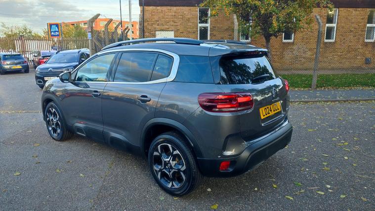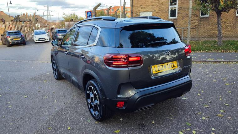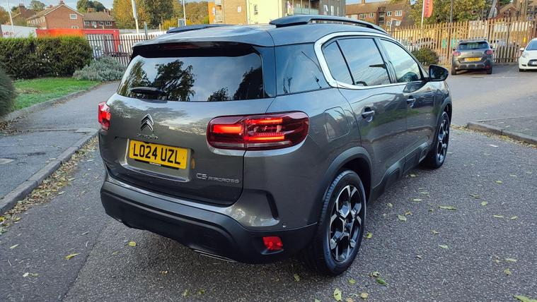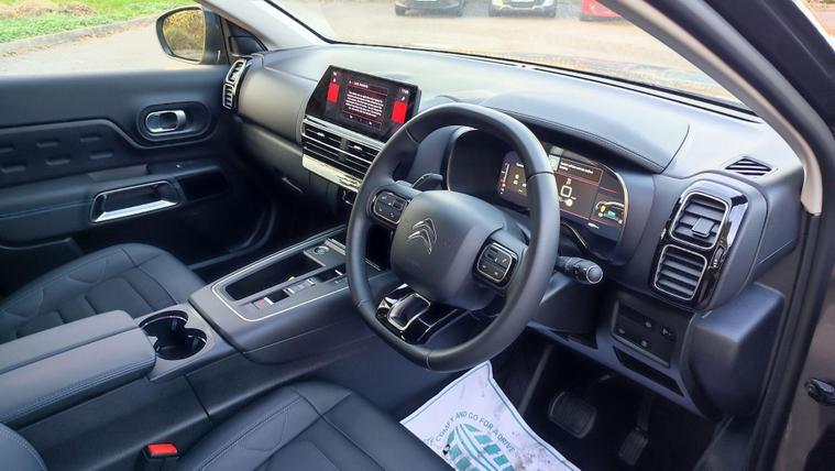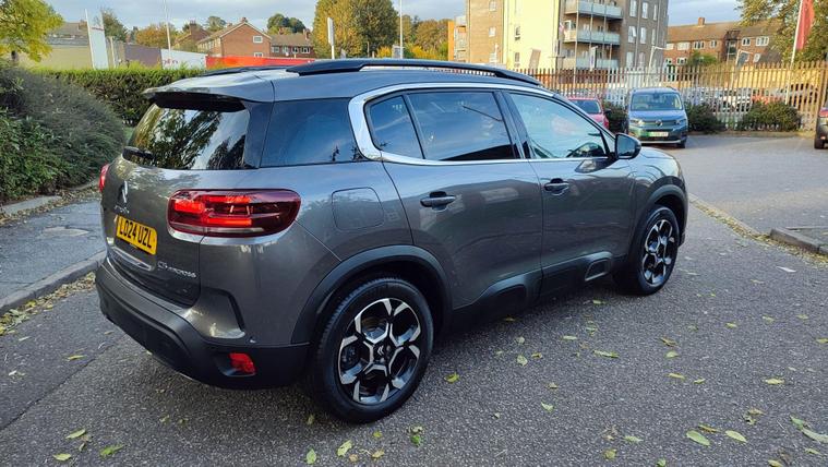 This 2024 Citroen C5 Aircross MAX is a remarkable find, boasting exceptionally low mileage for its year at just 8100 miles, and having been cherished by only one owner. This stylish SUV is powered by an efficient 1.2 litre petrol hybrid engine, meeting Euro 6 emission standards. Inside, you'll discover the sophisticated Urban Black Interior Ambience, complemented by a suite of advanced features. The Drive Assist Pack enhances your journeys with Blind Spot Assistance and Adaptive Cruise Control, while the Acoustic Laminated Windscreen, equipped with rain and brightness sensors, automatically activates the headlights for added convenience.Further enhancing its appeal, the City Camera Pack provides front and rear parking sensors along with a rear camera, making manoeuvring effortless. Inside, you'll enjoy the comfort of Automatic Dual Zone Climate Control. This C5 Aircross MAX stands out with its impressive fuel economy of 53 miles per gallon, a significant advantage over many similar vehicles. Its generous boot space offers practicality for all your needs, and its low CO2 emissions further highlight its efficiency and environmental consideration.