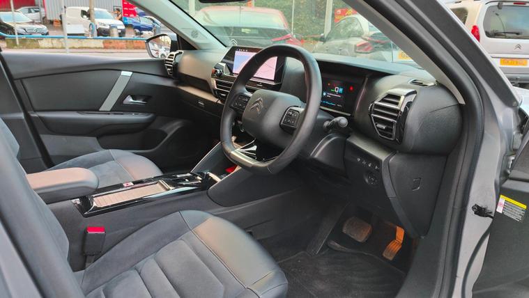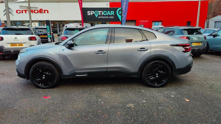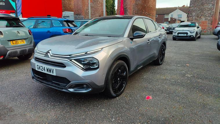 This 2024 Citroen e C4 X e series is a truly exceptional example, boasting a full dealership service history and being Citroen manufacturer approved, offering you complete peace of mind. This electric vehicle features a 50 kWh battery, providing a maximum range of 223 miles when new, making it ideal for both daily commutes and longer journeys. Charging is convenient, with a full charge at home taking approximately 7 hours and 30 minutes using a 7kW charger, and a rapid 30 minutes to reach 80% charge at a public charging station. The car benefits from a generous boot space, ensuring ample room for your luggage or shopping.This single owner vehicle comes equipped with a host of desirable features that enhance your driving experience. Enjoy the convenience of wireless smartphone charging, dual zone automatic air conditioning for personalised comfort, and advanced safety with blind spot detection. The driver's head up display keeps essential information in your line of sight, while keyless entry and start add to the effortless usability. These notable features, combined with its electric powertrain and impressive range, position this Citroen e C4 X as a superior choice for those seeking an efficient and well equipped vehicle. The remaining warranty further underscores its excellent condition.