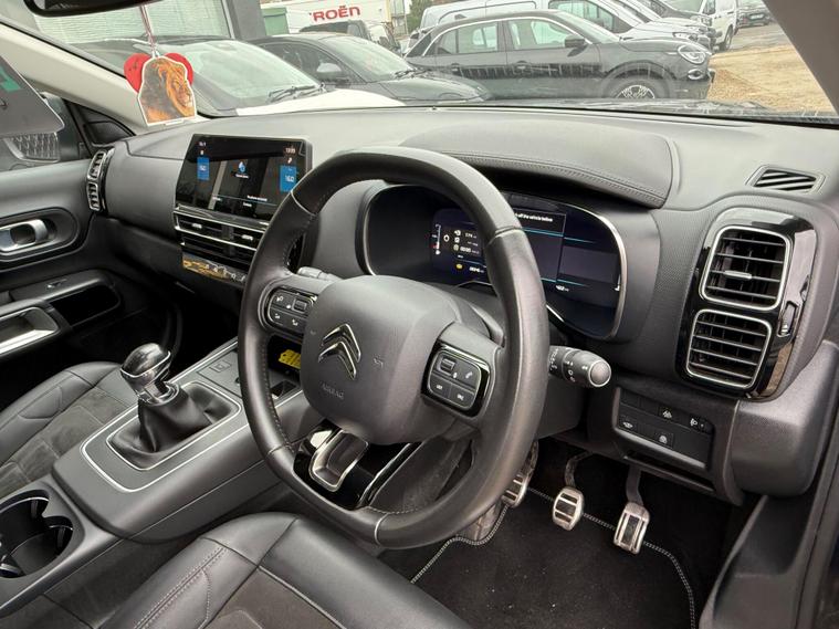 This 2022 Citroen C5 Aircross Shine is a superb example, having been owned by just one person since new. This stylish SUV boasts a 1.2 litre petrol engine and meets Euro 6 emissions standards. Inside, you'll find the convenience of Automatic Dual Zone Climate Control, ensuring comfort for all occupants. Stay connected and entertained with Citroen Connect Play, which seamlessly integrates both Android Auto and Apple CarPlay. Driving is made easier and safer thanks to the Acoustic Laminated Windscreen with Rain and Brightness Sensors, and Automatic Headlights with Welcome and Goodbye Lighting. The City Camera Pack, including front and rear parking sensors and a rear camera, makes manoeuvring in tight spaces a breeze.The C5 Aircross Shine offers excellent efficiency, achieving a highlight fuel economy of 49 miles per gallon, which is better than many other vehicles in its class. You'll also appreciate the generous boot space, perfect for luggage or shopping. Furthermore, its low CO2 emissions highlight its environmental consideration, making it a more economical choice for your motoring needs.
