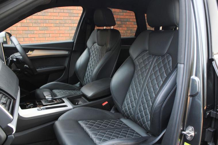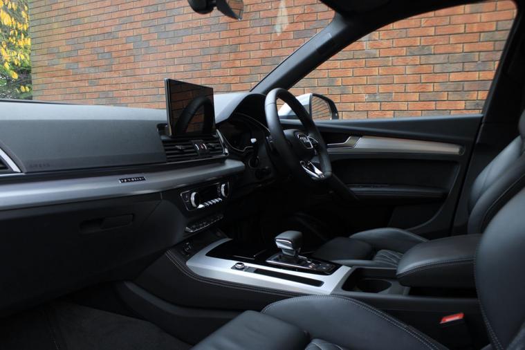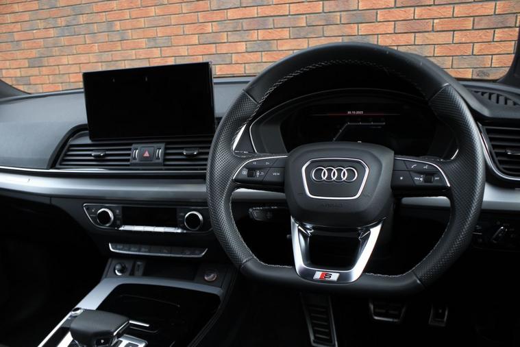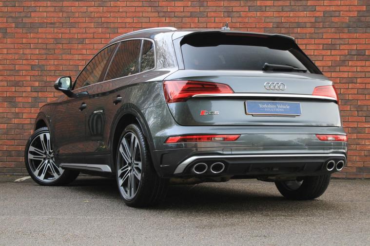 Finished in Daytona Grey pearl effect with black diamond patterned fine Nappa leather interior. Features include comfort and sound package (Bang & Olufsen advanced sound system, Audi advanced key, extended multi-coloured ambient lighting pack & 360-degree cameras), 21” five twin V-spoke design alloy wheels, Audi virtual cockpit plus, Audi Smartphone Interface with wireless Apple CarPlay, MMI Navigation Plus, front and rear park distance control with rear view camera, heated electric front sport seats with massage function, deluxe three zone climate control with automatic air conditioning, Bluetooth connectivity with media streaming, DAB digital radio, Matrix LED headlights with dynamic front and rear indicators, rain sensor, cruise control, Audi drive select, S sport suspension, heated electric folding exterior mirrors, privacy glass, matt brushed aluminium inlays, illuminated S door sills, black S brake calipers, roof rails, Audi net partition, Audi roof rack, Audi all-weather floor mats, detachable tow bar, voice control, electric tailgate, multifunctional leather steering wheel with paddleshift, automatic Tiptronic transmission plus much more standard specification. This SQ5 is offered in excellent condition having covered 41300 miles from new by its 1 former keeper. The car comes complete with a full Audi main dealer service history consisting of the following 10/08/2023 at 8025 miles, 23/02/2024 at 17892 miles, 14/10/2024 at 26161 miles and 13/06/2025 at 34744 miles.