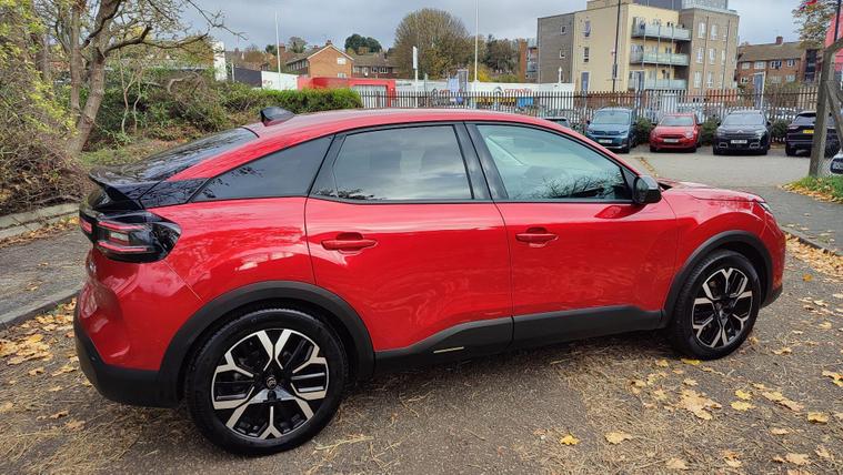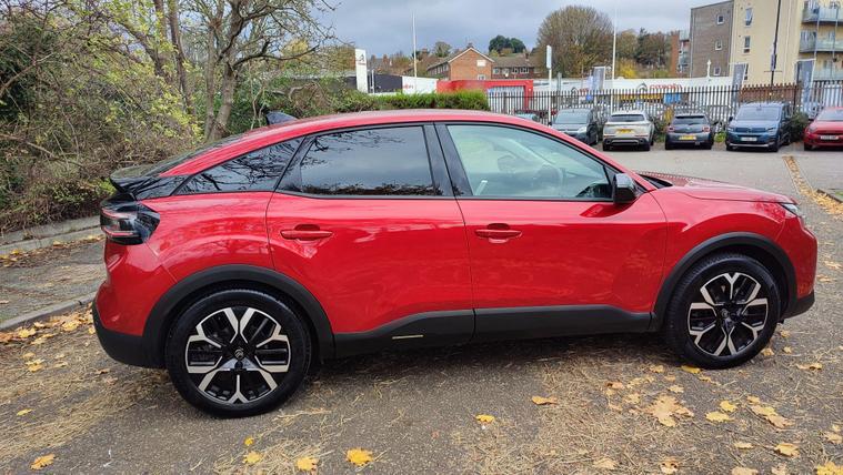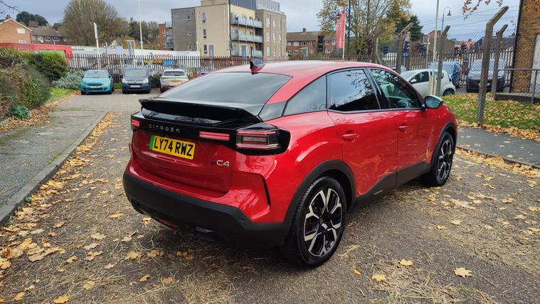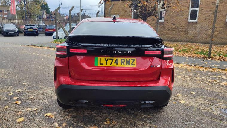 This 2025 Citroen e C4 Extended Range MAX is a standout example, having had only one owner and covered a remarkably low mileage of 5698 miles for its age. As an electric vehicle, it boasts a substantial 54 kWh battery offering a maximum range of 257 miles when new. Charging is convenient, with a full charge at home using a 7kW charger taking approximately 7 hours and 30 minutes, while rapid public charging can replenish the battery from empty to 80% in just 36 minutes. This MAX trim level comes equipped with a host of desirable features, including automatic dual zone air conditioning with climate control, a heated steering wheel for those colder mornings, and keyless entry and start for effortless access. Drivers will also appreciate the advanced Head Up Display and comprehensive parking assistance, which includes front and rear sensors, a reversing camera, and top rear vision.The generous boot space in this e C4 ensures practicality for all your needs, whether it's weekly shopping or luggage for a weekend getaway. The combination of its extended range capability, rapid charging options, and the low mileage and single owner provenance clearly sets this electric Citroen apart from others on the market. This vehicle offers an efficient and comfortable driving experience, enhanced by its modern technology and thoughtful design.