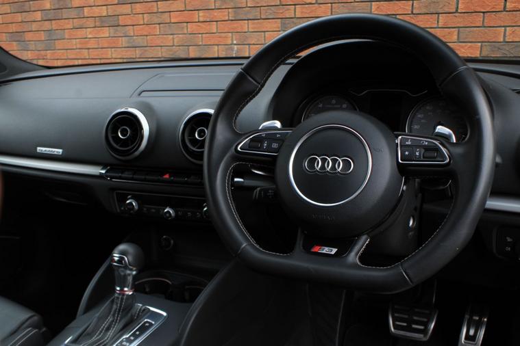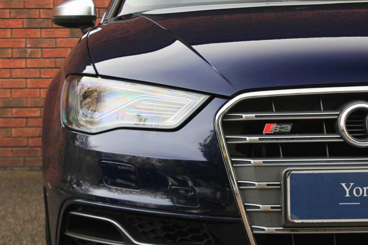 Finished in Estoril Blue crystal effect (£775) with black fine Nappa leather and super sports seats interior (£795). Features include technology package with HDD satellite navigation (£1495), comfort pack with Audi parking system plus (£855), Bang & Olufsen advanced sound system (£750), 18” five twin spoke star design alloy wheels, heated front seats with 4-way electric lumbar support (£195), digital dual zone climate control with automatic air conditioning, Bluetooth connectivity with media streaming, DAB digital radio, automatic xenon plus headlights, rain sensor, cruise control, Audi drive select, heated electric folding exterior mirrors (£150), matt brushed aluminium inlays, black S brake calipers, multifunctional flat bottomed leather steering wheel with paddleshift, automatic S Tronic transmission plus much more standard specification. This S3 has £5, 015 worth of options and is offered in excellent condition having covered 73100 miles from new. The car comes complete with a comprehensive service history consisting of the following 30/10/2014 at 6831 miles, 02/11/2015 at 11567 miles, 02/03/2017 at 16888 miles, 31/03/2018 at 20930 miles, 21/03/2019 at 24764 miles, 11/11/2018 at 24340 miles, 05/03/2020 at 36655 miles, 30/05/2023 at 59580 miles, 28/06/2023 at 59915 miles, 19/09/2024 at 66340 miles and 26/06/2025 at 69994 miles.