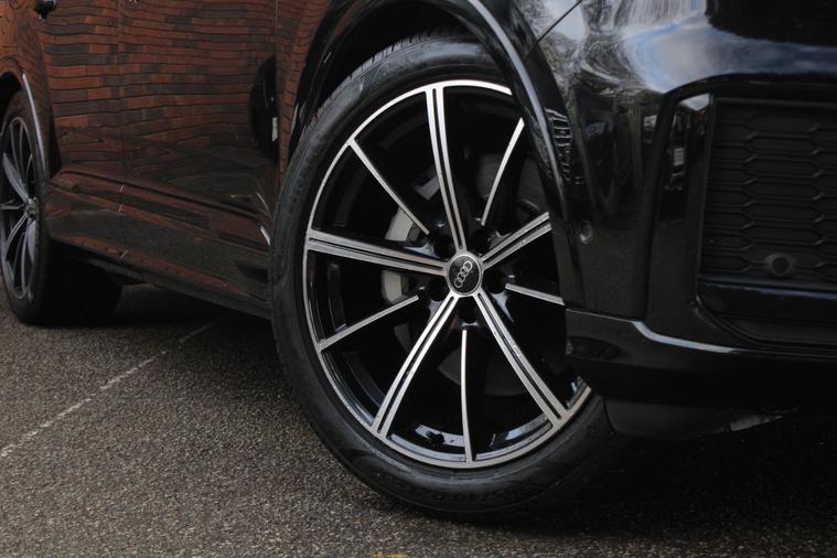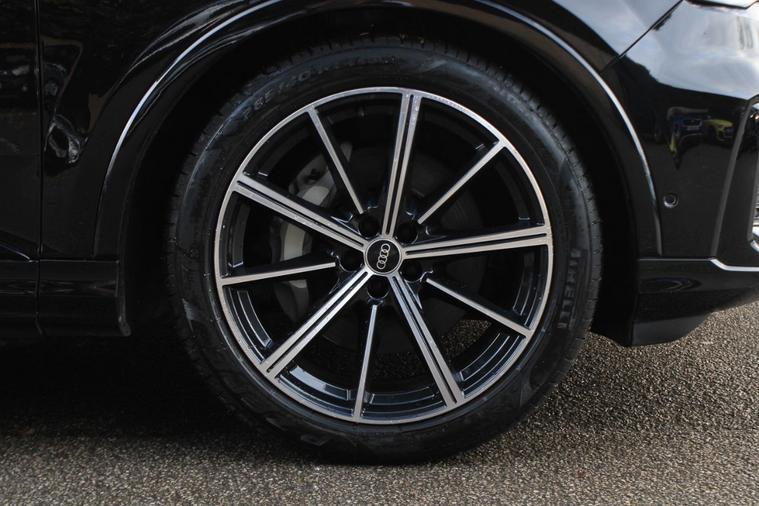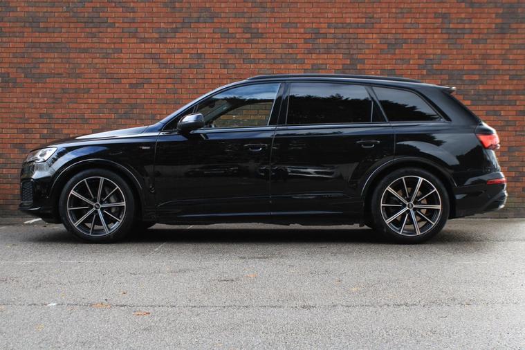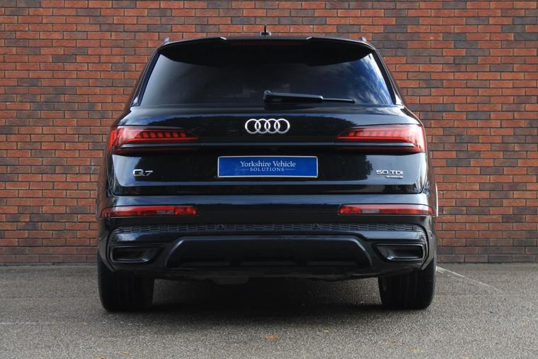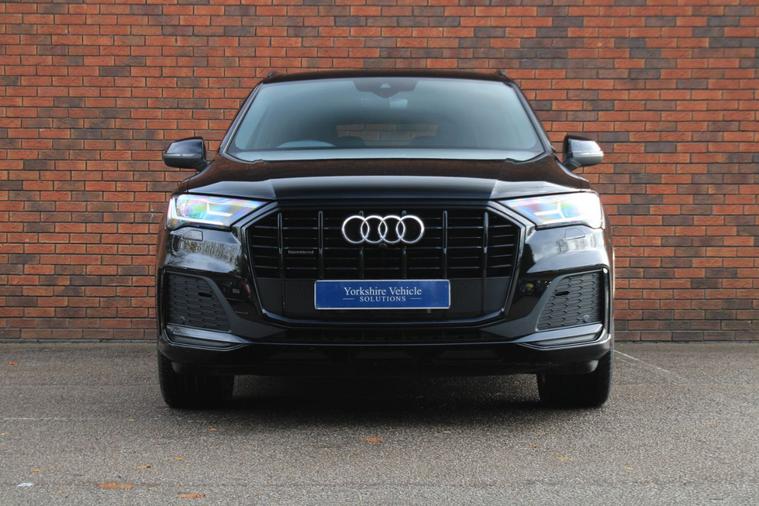 Finished in Mythos Black metallic with full black Valcona leather interior. Features include Audi virtual cockpit, Audi Smartphone Interface, MMI Navigation plus, titanium black styling package, 21” ten spoke star style design alloy wheels, front and rear park distance control with rear view camera, heated electric front sport seats with driver memory function, digital four zone climate control with automatic air conditioning, third row seating, Bluetooth connectivity with media streaming, DAB digital radio, Matrix LED headlights with dynamic front and rear indicators, rain sensor, cruise control, adaptive air sport suspension, Audi drive select, traffic sign recognition, lane departure warning, heated electric folding exterior mirrors, rear privacy glass, keyless start, polished grey oak inlays, illuminated S door sills, voice control, electric tailgate, multifunctional flat bottomed leather steering wheel with paddleshift, automatic Tiptronic transmission plus much more standard specification. This Q7 Black Edition 50TDI is offered in excellent condition having covered 45400 miles from new by its 1 owner. The car comes complete with an Audi main dealer service history consisting of the following 09/11/2023 at 13179 miles and 30/05/2025 at 41029 miles. VAT Q.