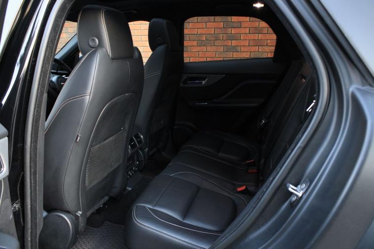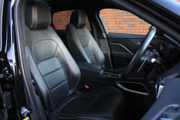 Finished in Narvik Black with full jet perforated grained leather interior. Features include In Control touch pro pack with Meridian 380W sound (interactive driver’s display & touch pro navigation) (£1250), fixed panoramic glass sunroof with powered sunblind (£1250), S black exterior pack (£690), adaptive LED headlights with LED signature daytime running lights (£915), surround camera system (£990), cold climate pack (heated front and rear seats, heated steering wheel, heated front windscreen and washer jets) (£540), 20” five spoke ‘style 5035’ alloy wheels in gloss black (£420), front and rear park distance control with rear view camera, 10-way electric front seats, digital dual zone climate control with automatic air conditioning, Bluetooth connectivity with media streaming, DAB digital radio, rain sensor, cruise control, adaptive dynamics with dynamic-I, lane departure warning, Jaguar performance braking system with red calipers, electric folding exterior mirrors, privacy glass (£395), keyless entry, interior ambient lighting, roof rails, dark hex aluminium trim finisher, voice control, electric tailgate, multifunctional leather steering wheel with paddleshift, automatic transmission plus much more standard specification. This F Pace S has £6, 450 worth of options and is offered in excellent condition having covered 65300 miles from new. The car comes complete with a service history consisting of the following 25/08/2018 at 11935 miles, 08/04/2019 at 24038