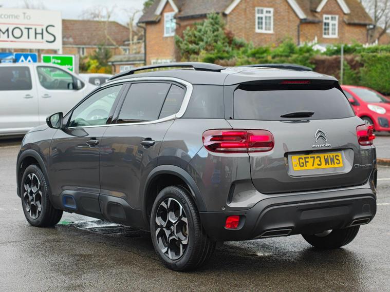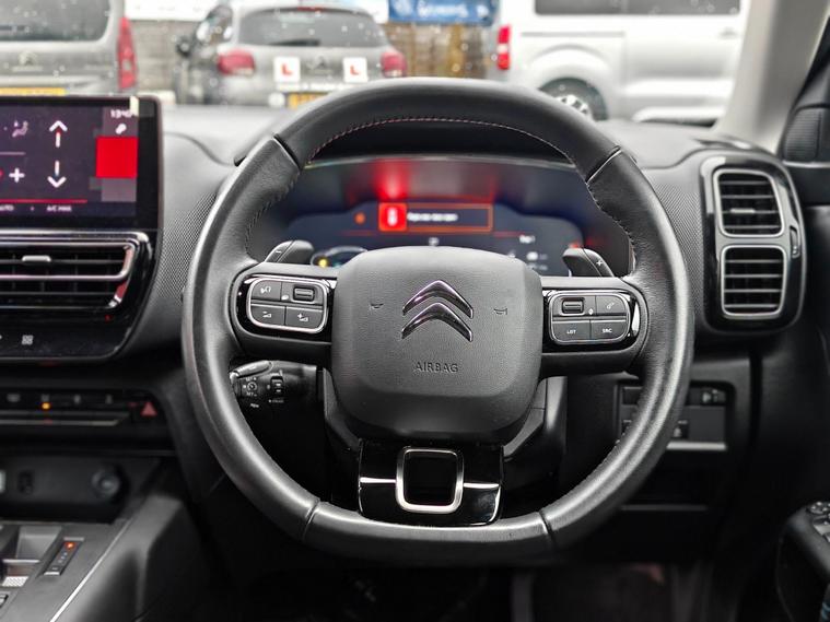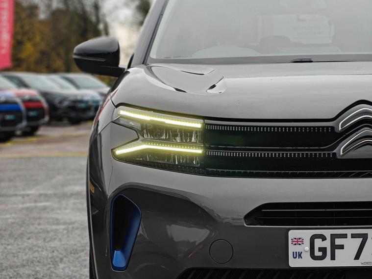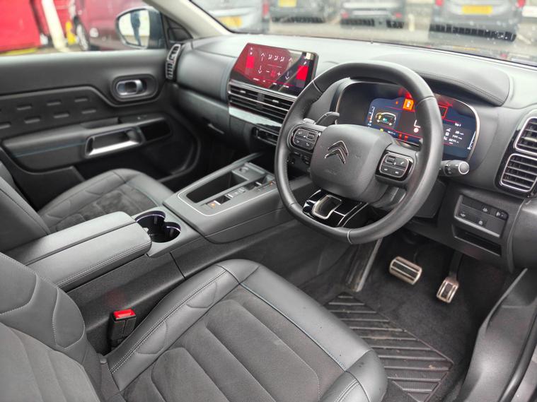 This 2023 Citroen C5 Aircross Shine is a superb example, having had only one owner since new. This stylish SUV is powered by an efficient 1.2 litre petrol hybrid engine, meeting Euro 6 emission standards. It comes equipped with an acoustic laminated windscreen featuring rain and brightness sensors, which also activates the automatic headlights. Inside, you'll find automatic dual zone climate control for personalised comfort, and the City Camera Pack offers front and rear parking sensors along with a rear camera to aid manoeuvring. For enhanced safety and convenience, the Drive Assist Pack includes adaptive cruise control and blind spot assistance, further complemented by electric, heated, and folding door mirrors with LED approach lighting and blind spot monitoring indicators.The Citroen C5 Aircross Shine offers impressive practicality with its large boot space, making it ideal for families or those needing extra room. Its low CO2 emissions highlight its environmental consideration, and with a fuel economy of up to 53 mpg, it represents excellent value for money. These factors combined indicate that this vehicle offers a more economical and practical ownership experience compared to many other similar cars on the market.