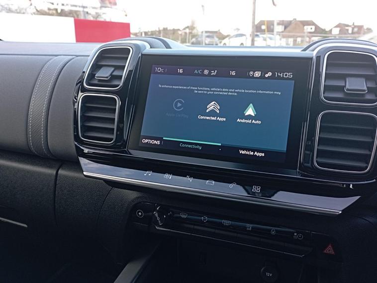 This 2022 Citroen C5 Aircross Shine Plus is a superb example, having been owned by just one person since new. This stylish SUV boasts a 1.6 litre petrol plug in hybrid engine, meeting the Euro 6 emission standards. It comes equipped with a convenient smartphone charging plate for wireless phone charging, and the Visibility Pack ensures automatic headlights for enhanced driving safety.Enjoy seamless connectivity with Mirror Screen, supporting both Apple CarPlay and Android Auto, allowing you to access your favourite apps directly on the central screen. Parking is made effortless with rear parking sensors and a reversing camera displayed on the central screen, offering comprehensive parking assistance. These features collectively demonstrate the advanced technology and thoughtful design integrated into this Shine Plus model, setting it apart for a superior driving experience.