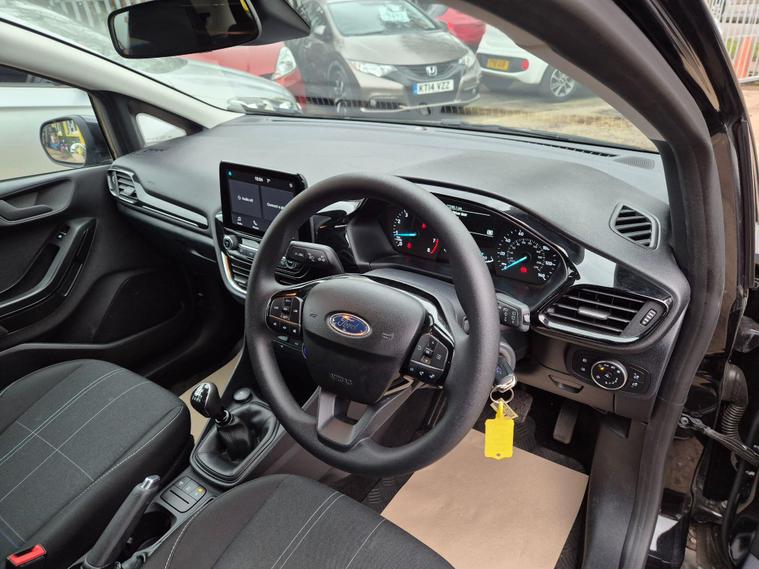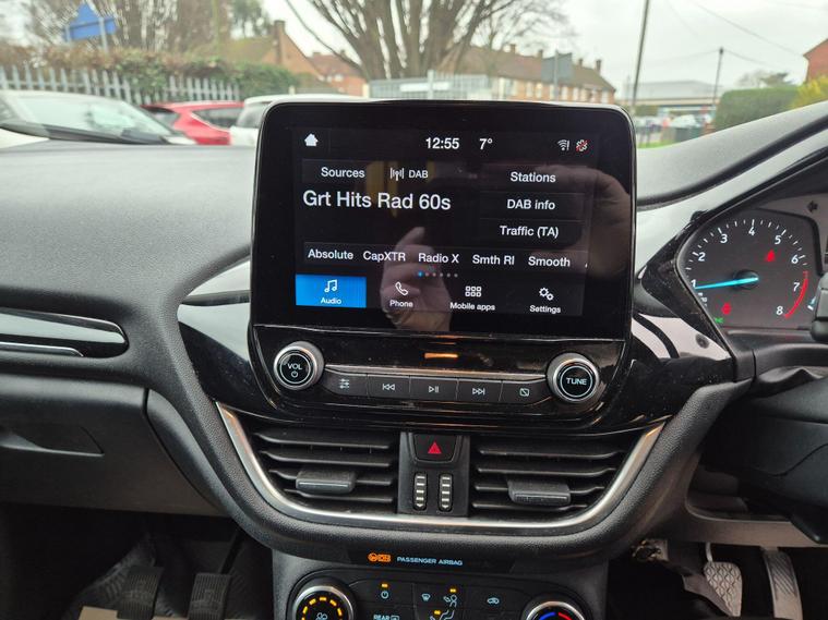 Discover this 2021 Ford Fiesta T Trend, a well maintained example ready for its next owner. This popular hatchback is powered by an efficient 1.0L petrol engine, meeting Euro 6 emission standards. It comes equipped with the desirable City Pack, which includes rear parking assistance, and the NCAP Pack, featuring automatic headlights. For enhanced visibility, it boasts LED projector headlights with distinctive daytime running lights. Inside, you'll find the Ford SYNC system with a touchscreen, offering DAB radio, Apple CarPlay, Android Auto, and Bluetooth connectivity, all managed through the FordPass Connect embedded modem. Comfort is assured with manual air conditioning.This Ford Fiesta Trend offers an impressive fuel economy of 55 mpg, demonstrating its efficiency on your journeys. Its low CO2 emissions also contribute to its economical running costs. The acceleration from 0 to 62 mph in 10.6 seconds shows a responsive performance that makes it a capable car for both city driving and longer trips. These highlights indicate how this Fiesta Trend provides a superior driving experience compared to other vehicles in its class.