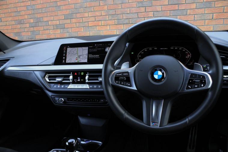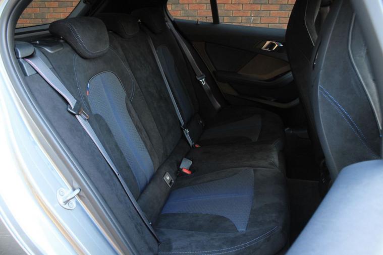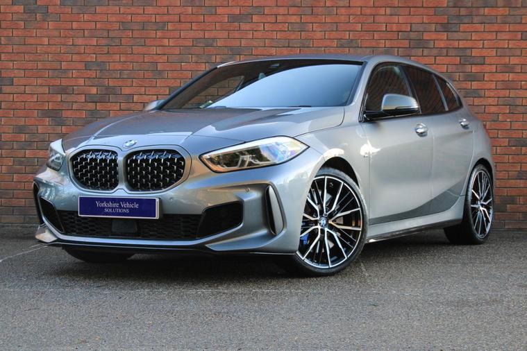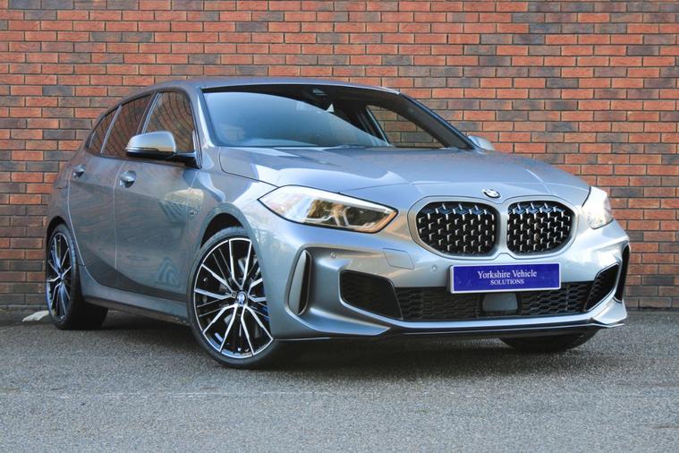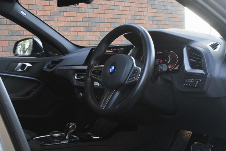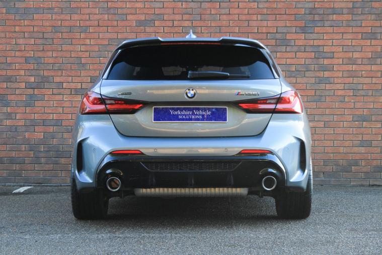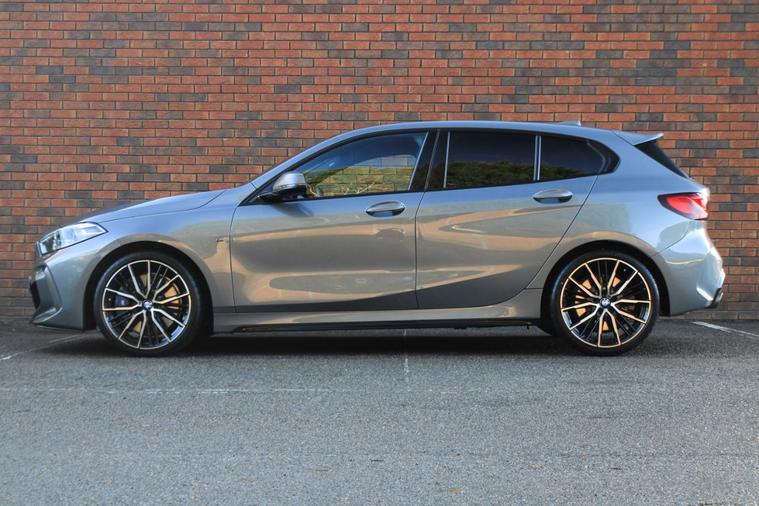 Finished in Skyscraper Grey metallic with anthracite Trigon cloth and alcantara interior. Features include M135i Pro pack (19” 552M double spoke style alloy wheels, Harman Kardon surround sound system & sun protection glazing), BMW Live Cockpit Professional, Apple CarPlay and Android Auto, Professional navigation, front and rear park distance control, heated front M Sport seats, digital dual zone climate control with automatic air conditioning, bluetooth connectivity with media streaming, DAB digital radio, automatic LED headlights, rain sensor, cruise control, M Sport braking system with blue calipers, M Sport suspension, BMW Connected Services, electric folding exterior mirrors, keyless start, illuminated Boston interior trim, high gloss shadow line exterior trim, M seat belts, voice control, multifunctional leather steering wheel with paddleshift, automatic transmission plus much more standard specification. This M135i is offered in excellent condition having covered 20900 miles from new by its 1 former keeper. The car comes complete with the reassurance of a remaining manufacturers warranty until September 2026 and a full BMW main dealer service history consisting of the following – 18/07/25 at 17897 miles.