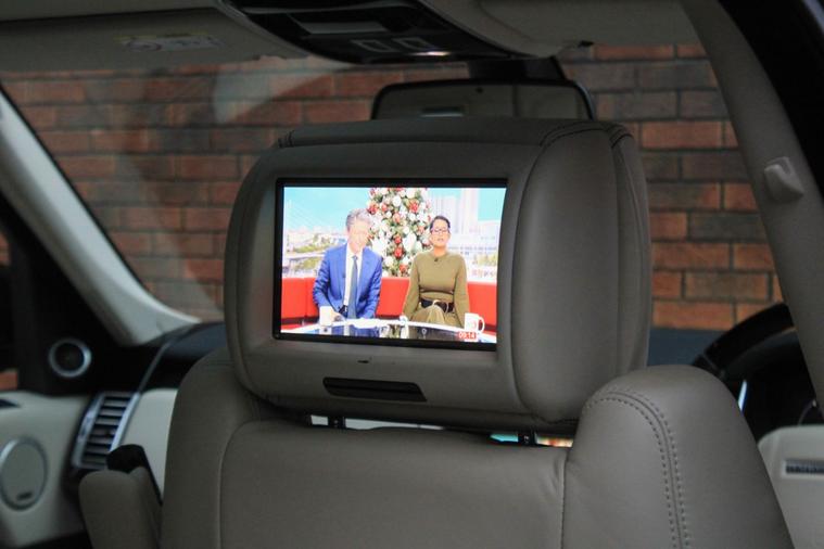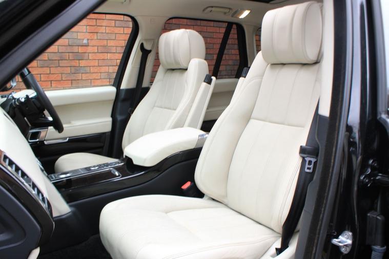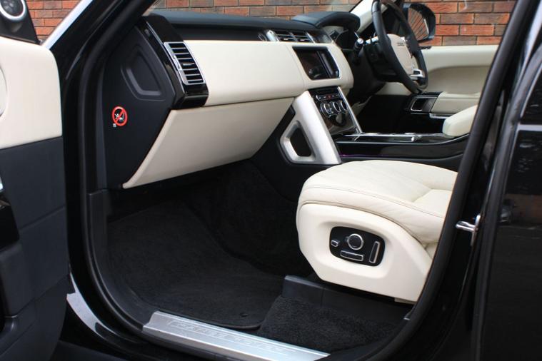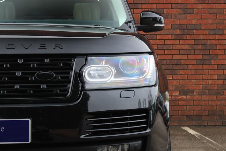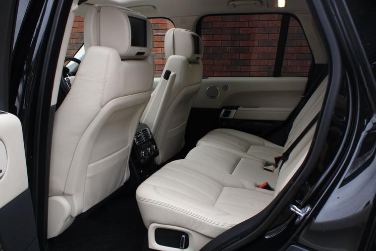 Finished in Santorini Black metallic with full ivory Semi Aniline leather interior. Features include factory fitted rear seat entertainment, sliding panoramic glass sunroof with powered sunblind, black design pack, 22” seven split spoke ‘style 707’ alloy wheels in gloss black, heated steering wheel, front and rear park distance control with rear view camera, heated and cooled 20-way front seats with memory function, digital dual zone climate control with automatic air conditioning, heated outer rear seats, Meridian 825W surround sound system, TV reception with dual view, bluetooth connectivity with media streaming, DAB digital radio, automatic xenon headlights with LED signature lighting, high beam assist, rain sensor, adaptive cruise control, terrain response, blind spot monitoring, heated front windscreen, electric folding exterior mirrors, rear privacy glass, keyless entry, soft close doors, interior ambient lighting, grand black veneer, front and rear winged headrests, voice control, electric tailgate, multifunctional leather and wood steering wheel with paddleshift, automatic transmission plus much more standard specification. This highly specified Vogue SE 4.4 SDV8 is offered in excellent condition having covered 102500 miles from new. The car comes complete with a service history.