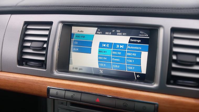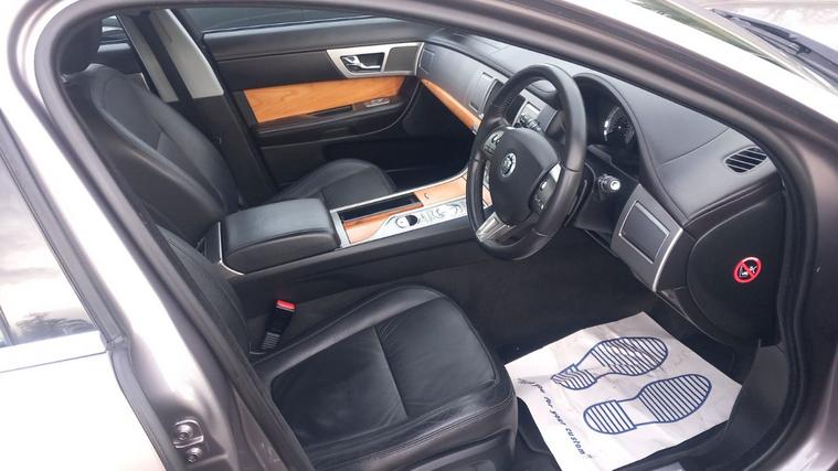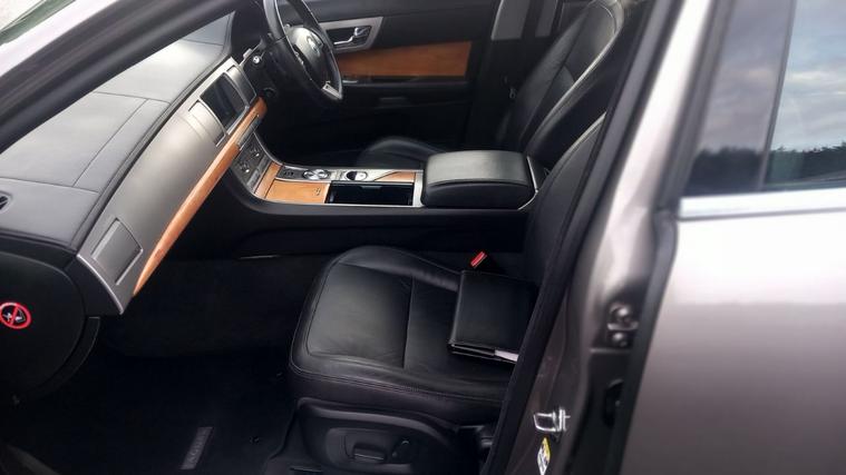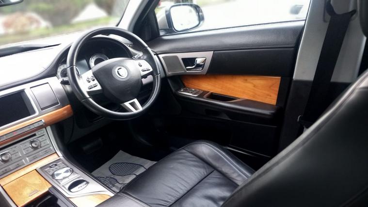 Jaguar XF Luxury, blending sophisticated design with potent V8 performance. A sophisticated and comfortable interior with wood trim and leather upholstery