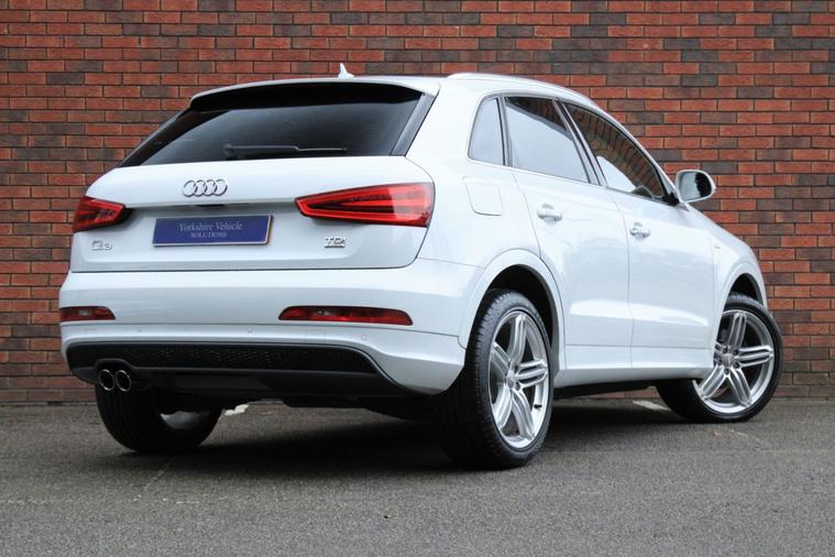 Finished in Glacier White metallic with full black sprint cloth interior. Features include Bluetooth connectivity with media streaming, 19” five segment spoke design alloy wheels, rear acoustic park distance control, front sport seats with electric lumbar support, digital dual zone climate control with automatic air conditioning, DAB digital radio, automatic bi-xenon plus headlights with LED daytime running lights, rain sensor, dynamic suspension, heated electrically adjustable exterior mirrors, privacy glass, matt brushed aluminium inlays, roof rails, voice control, multifunctional leather steering wheel, automatic S Tronic transmission plus much more standard specification. This Q3 is offered in excellent condition having covered 70000 miles from new. The car comes complete with a service history.