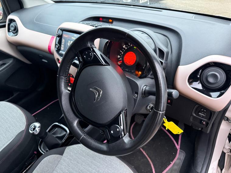 This 2019 Citroen C1 VTi ELLE is a superb example of a well maintained city car. It boasts a 1.0 litre petrol engine and meets Euro 6 emissions standards. Inside, you'll find the convenient 7in Touch Drive Interface, compatible with both Android Auto and Apple CarPlay, alongside a DAB digital radio with MP3 audio, four speakers, Bluetooth handsfree, a USB socket, and steering mounted controls. Comfort is enhanced by automatic air conditioning and automatic headlights, while the reversing camera aids parking.This particular C1 ELLE offers excellent running costs, achieving an impressive 57 miles per gallon. Its low insurance group rating and low CO2 emissions further highlight its efficiency and affordability compared to other vehicles in its class, making it an economical choice for everyday driving.