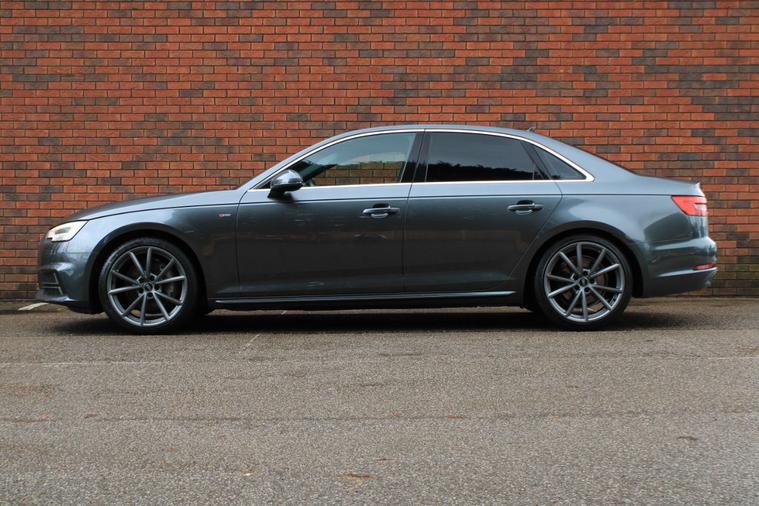 Finished in Daytona Grey pearl effect with black leather and sprint cloth interior. Features include 19” five V-spoke design alloy wheels in grey, Audi Smartphone Interface, MMI Navigation, Audi parking system plus, front sport seats with 4-way electric lumbar support, deluxe three zone climate control with automatic air conditioning, Bluetooth connectivity with media streaming, DAB digital radio, automatic LED headlights with LED daytime running lights, rain sensor, cruise control, Audi drive select with sport suspension, heated electrically adjustable exterior mirrors, rear privacy glass, keyless start, dynamic rear indicators, matt brushed aluminium inlays, illuminated S door sills, voice control, multifunctional flat bottomed leather steering wheel with paddleshift, automatic S Tronic transmission plus much more standard specification. This A4 Quattro is offered in excellent condition having covered 69900 miles from new. The car comes complete with a service history.