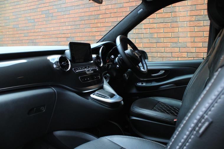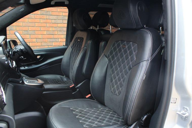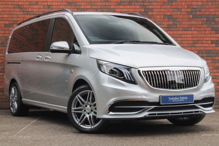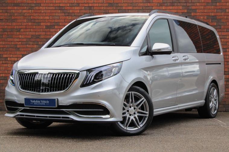 Finished in Brilliant Silver metallic with Maybach style black leather and quilted alcantara interior. Features include Maybach style conversion (front bumper & grille, rear bumper, rear spoiler & chrome exhaust tips), 8 seats, drop down LED media screen, 19” AMG twin spoke alloy wheels, front and rear park distance control with rear view camera, heated front seats with electric lumbar support, digital three zone climate control with automatic air conditioning, Bluetooth connectivity with media streaming, DAB digital radio, Maybach style automatic headlights, rain sensor, cruise control, dynamic select, blind spot assist, brake assist, electrically adjustable exterior mirrors, limousine privacy glass, LED mood lighting, sliding rear passenger doors, black alcantara roof lining, widescreen infotainment display included, roof rails, voice control, multifunctional leather steering wheel with paddleshift, automatic transmission plus much more standard specification. This Maybach style V220d Sport LWB is offered in excellent condition having covered only 12800 miles from new. The car comes complete with a service history.