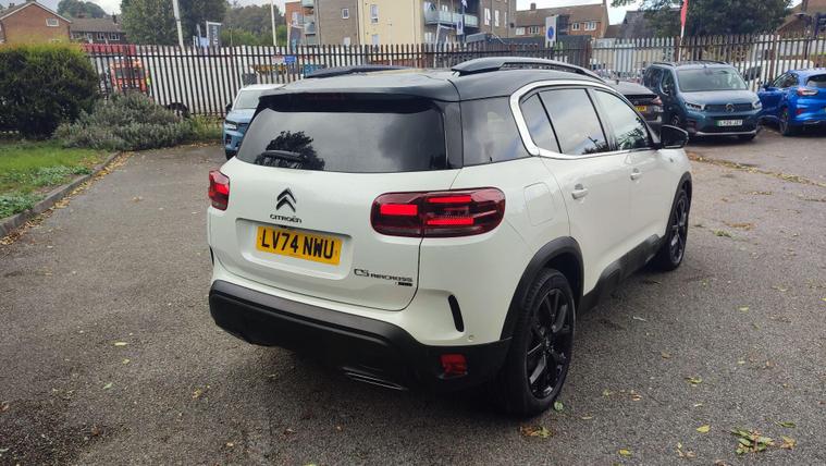 This 2024 Citroen C5 Aircross e-series presents an exceptional ownership proposition with remarkably low mileage for its year, having covered just 5926 miles. As a single owner vehicle, this Euro 6 compliant model boasts a 1.6 litre petrol plug in hybrid engine, offering an efficient and modern driving experience. The e-series trim ensures a well equipped interior, featuring an acoustic laminated windscreen with rain and brightness sensors, automatic dual zone climate control, and striking LED headlights with distinctive LED daytime running lights. For enhanced safety and convenience, it includes the Drive Assist Pack with Highway Driver Assist, incorporating Blind Spot Assistance and Adaptive Cruise Control.Further enhancing its appeal, this C5 Aircross offers an opening panoramic roof with an electric sunblind, creating a bright and airy cabin. The generous boot space is a significant advantage, providing ample room for luggage, shopping, or family adventures, setting it apart from many vehicles in its class. This combination of advanced technology, comfort features, and practical space makes the Citroen C5 Aircross e-series a compelling choice for those seeking a versatile and well maintained vehicle.