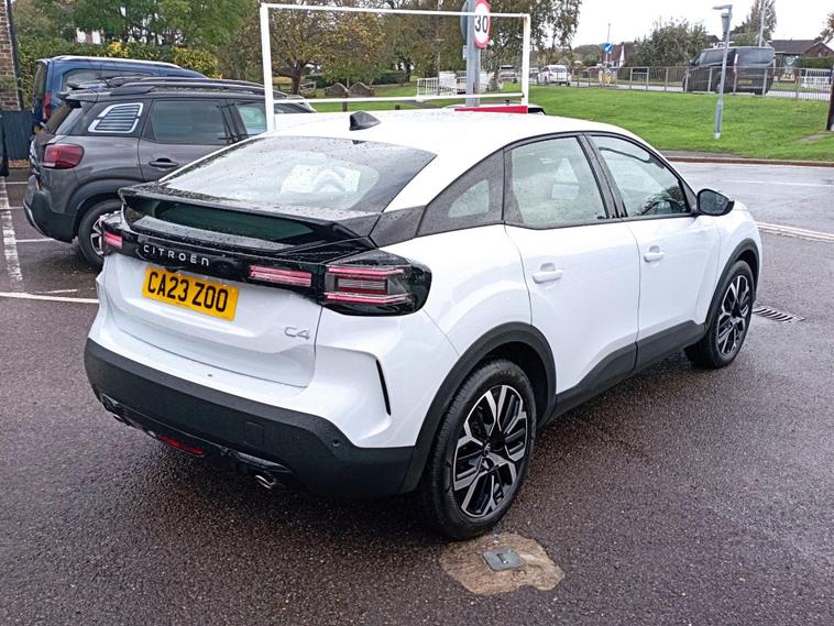 This 2025 Citroen C4 PLUS is a superb example, having had only one owner from new (PRIVATE INCLUDED OR ON A 25 REG YOUR CHOICE). It features a responsive 1.2 litre petrol hybrid engine, meeting Euro 6 emission standards. Inside, you'll find automatic dual zone air conditioning for perfect cabin comfort, and the My Citroen Drive Plus system which seamlessly integrates Android Auto and Apple CarPlay, alongside Bluetooth connectivity. Navigating is made easier with the Head Up Display, and visibility is enhanced by LED headlights that activate automatically.This C4 PLUS offers impressive performance, achieving 0 to 62 miles per hour in just 8.0 seconds, demonstrating its dynamic capability. You'll also appreciate the generous boot space, perfect for luggage or shopping. Furthermore, its fuel economy is a standout feature, achieving an excellent 62 miles per gallon, which indicates its efficiency compared to other vehicles in its class.The Citroën C4 represents a fresh approach to the compact car segment, blending modern styling, advanced technology, and versatility. This latest iteration of the C4 showcases Citroën's commitment to innovation and sustainability, offering a range of powertrains to cater to different customer needs, including a fully electric option. The C4 is available as a five-door compact hatchback with a focus on comfort, convenience, and a refined driving experience.Technology and Features: The C4 is equipped with a comprehensive suite of technology and