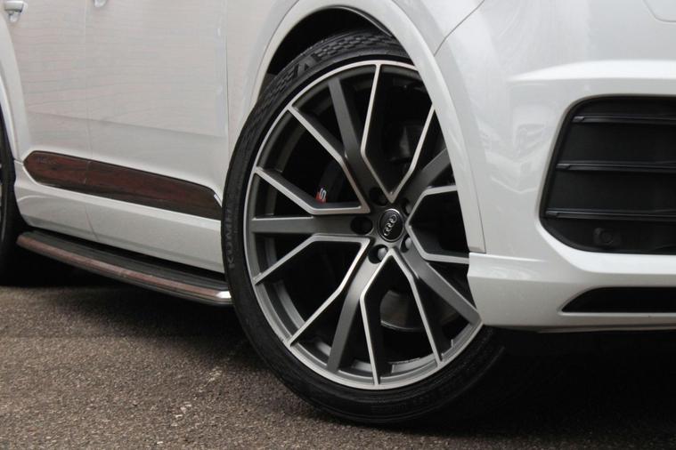 Finished in Glacier White metallic (£675) with full black Valcona leather interior. Features include technology package (head-up display, Audi virtual cockpit & Audi phone box with wireless charging) (£1195), 22” five V-spoke aluminium star design alloy wheels (£1400), titanium black styling package (£825), MMI Navigation Plus, Audi parking system plus with rear view camera, heated electric front sport seats, deluxe four zone climate control with automatic air conditioning, Audi Smartphone Interface, Bluetooth connectivity with media streaming, DAB digital radio, automatic LED headlights with high beam assist, rain sensor, cruise control, adaptive S air suspension with drive select, active sound exhaust system, heated electric folding exterior mirrors, rear privacy glass, keyless start, dynamic rear indicators, upper inlays in brushed aluminium, black roof rails, running boards, voice control, electric tailgate, multifunctional leather steering wheel with paddleshift, automatic Tiptronic transmission plus much more standard specification. This SQ7 has £4, 095 worth of options and is offered in excellent condition having covered 82000 miles from new by its 1 former keeper. The car comes complete with an Audi main dealer and specialist service history consisting of the following 25/07/2019 at 18838 miles, 06/09/2021 at 32757 miles, 29/09/2022 at 41404 miles, 03/04/2023 at 48879 miles, 14/02/2024 at 58357 miles, 08/01/2025 at 68818 miles and 04/08/2025 at 77784 miles.