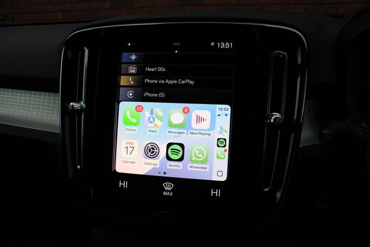 Finished in Onyx Black metallic (£585) with charcoal textile and vinyl interior. Features include Apple CarPlay and Android Auto, digital driver’s display, Sensus satellite navigation, wireless phone charging, 18” diamond cut five spoke alloy wheels, rear park distance control, digital dual zone climate control with automatic air conditioning, Bluetooth connectivity with media streaming, DAB digital radio, automatic LED headlights with active high beam, rain sensor, cruise control, road sign information display, lane keeping aid, drive modes, electric folding exterior mirrors, keyless start, rear privacy glass, urban grid aluminium inlays, roof rails, voice control, multifunctional leather steering wheel, automatic transmission plus much more standard specification. This XC40 has £585 worth of options and is offered in excellent condition having covered 52000 miles from new by its 1 former keeper. The car comes complete with a full Volvo main dealer service history consisting of the following 25/01/2024 at 8122 miles, 01/11/2024 at 16191 miles and 15/05/2025 at 34290 miles.