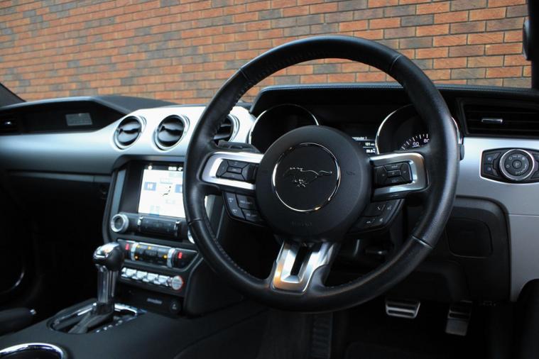 Finished in Magnetic Grey metallic with full ebony Salerno leather interior. Features include Shaker Pro premium audio with SYNC satellite navigation, climate controlled front seats, Apple CarPlay and Android Auto, 19” cross spoke alloy wheels finished in black, rear park distance control with rear view camera, heated front seats, digital dual zone climate control with automatic air conditioning, Bluetooth connectivity with media streaming, DAB digital radio, automatic xenon headlights, rain sensor, cruise control, limited slip differential, driving and steering modes, electric folding exterior mirrors, rear privacy glass, keyless entry, rear lip spoiler, illuminated Mustang door sills, voice control, multifunctional leather steering wheel with paddleshift, automatic transmission plus much more standard specification. This low mileage Mustang has covered only 40400 miles from new and is offered in excellent condition. The car comes complete with a service history consisting of the following 22/03/2019 at 2141 miles, 04/03/2020 at 3865 miles, 21/06/2023 at 22184 miles, 12/06/2024 at 25158 miles and 13/06/2025 at 34930 miles.