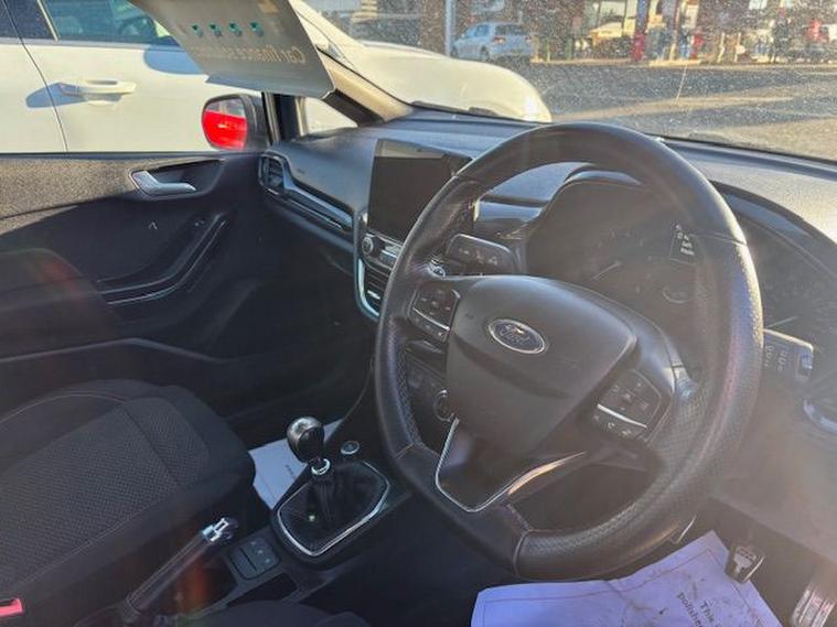 FORD FIESTA 1.0 ECOBOOST ST LINE FINISHED IN BLACK METALLIC WITH BLACK/GREY CLOTH SEATING REMOTE CENTRAL LOCKING POWER STEERING ELECTRIC WINDOWS ELECTRIC MIRRORS CRUISE CONTROL SPEED LIMITER TOUCHSCREEN MEDIA WITH NAVIGATION AIR CONDITIONING BLUETOOTH HEATED WINDSCREEN BOOT SPOILER AND ALLOY WHEELS