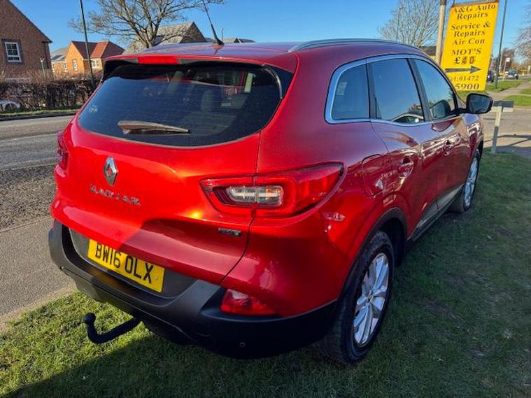 RENAULT KADJAR 1.5DCI AUTOMATIC DYNAMIQUE NAV FINISHED RED METALLIC WITH CONTRASTING BLACK/GREY CLOTH SEATING WITH WHITE STITCHING REMOTE CENTRAL LOCKING POWER STEERING ELECTRIC WINDOWS ELECTRIC FOLDING MIRRORS TOUCHSCREEN MEDIA WITH NAVIGATION AND BLUETOOTH CRUISE CONTROL AND SPEED LIMITER AIR CONDITIONING FRONT FOG LIGHTS ALLOY WHEELS AND PARKING SENSORS