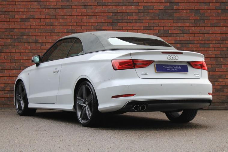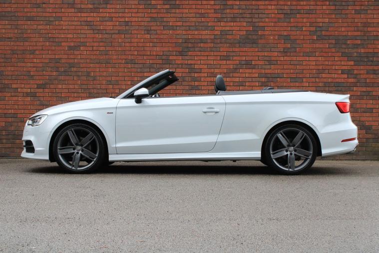 Finished in Glacier White metallic with black Pearl Nappa leather and Biathlon cloth interior. Features include head-level heating system, satellite navigation, 19” five arm wing design alloy wheels, dark grey hood, rear acoustic park distance control, heated front sport seats, digital dual zone climate control with automatic air conditioning, Bluetooth connectivity with media streaming, DAB digital radio, automatic bi-xenon plus headlights with LED daytime running lights, Audi drive select, heated electrically adjustable exterior mirrors, matt brushed aluminium inlays, voice control, multifunctional flat bottomed leather steering wheel with paddleshift, automatic S Tronic transmission plus much more standard specification. This low mileage A3 Cabriolet is offered in excellent condition having covered 49000 miles from new. The car comes complete with a service history to include the cambelt replacement.