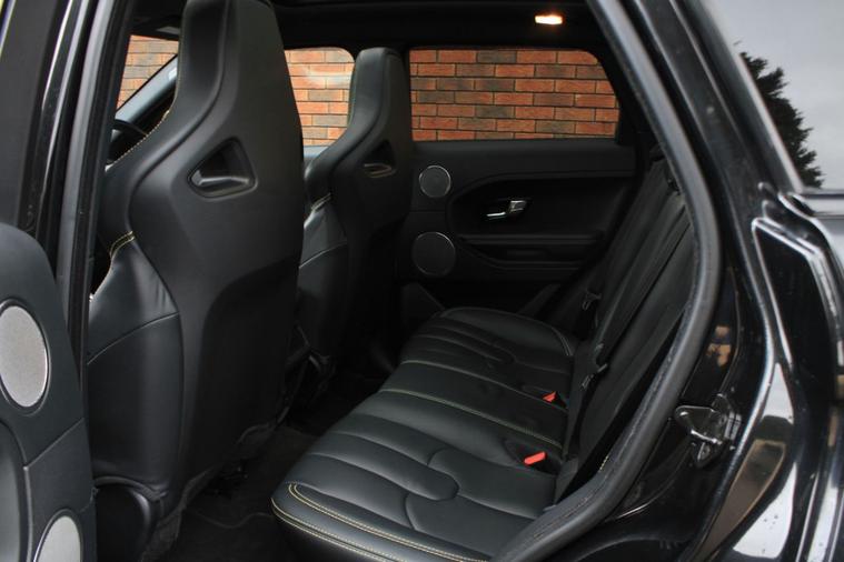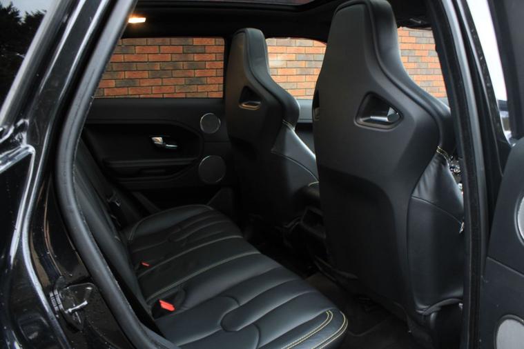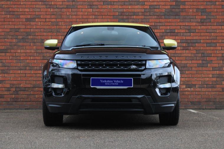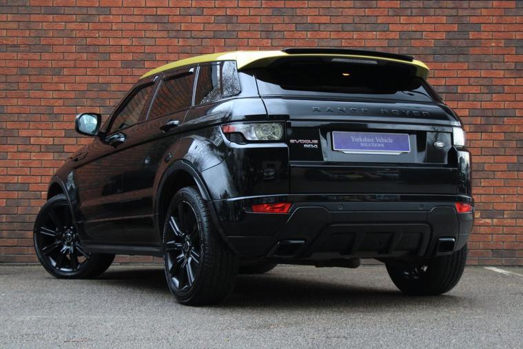 Finished in Santorini Black metallic with full ebony Oxford leather interior. Features include dynamic plus pack with front sport bucket seats, fixed panoramic glass sunroof with powered sunblind, black exterior pack with aero flip attachment for spoiler, Sicilian Yellow roof, door mirrors and rear spoiler, 20” nine spoke alloy wheels finished in gloss black, front and rear park distance control with rear view camera, heated electric front seats with driver memory function, digital dual zone climate control with automatic air conditioning, Meridian 380W sound system, satellite navigation, Bluetooth connectivity with media streaming, DAB digital radio, automatic xenon headlights with LED signature lighting, rain sensor, cruise control, terrain response with adaptive dynamics, electric folding exterior mirrors, rear privacy glass, keyless entry, yellow anodised aluminium trim finisher, illuminated tread plates, voice control, electric tailgate, multifunctional leather steering wheel with paddleshift, automatic transmission plus much more standard specification. This Evoque Special Edition is offered in excellent condition having covered 74400 miles from new. The car comes complete with a service history.