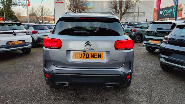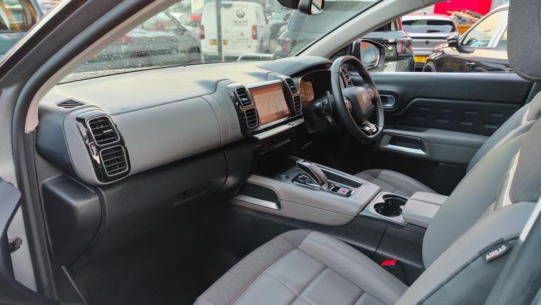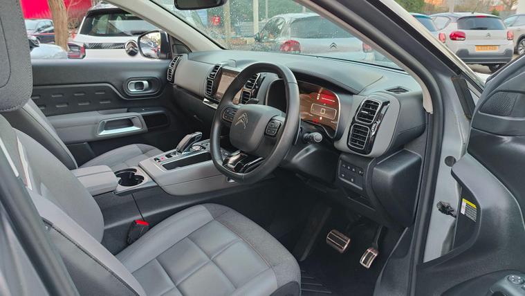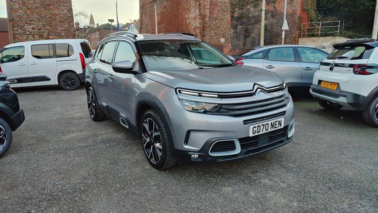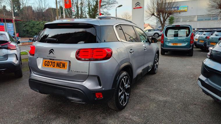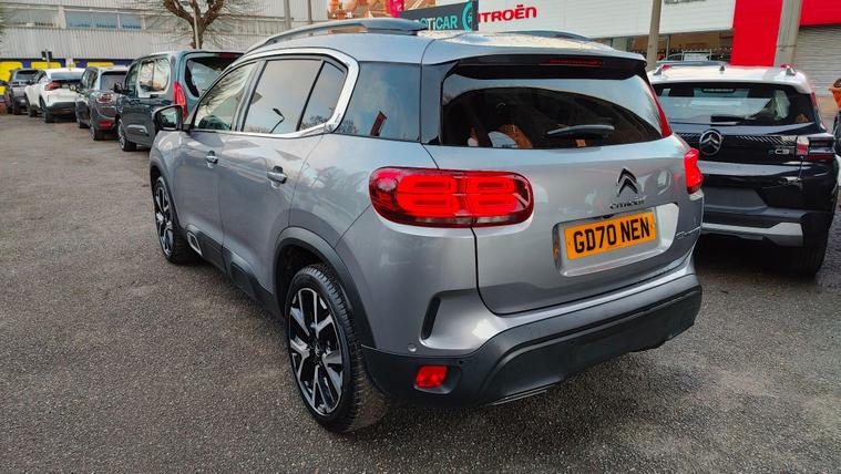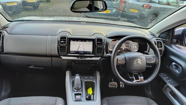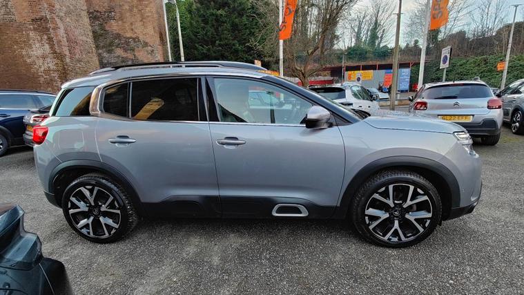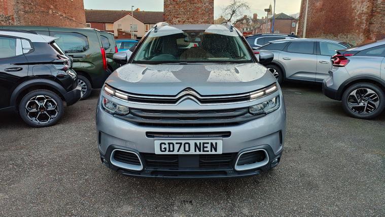 This 2020 Citroen C5 Aircross Flair Plus is a Citroen manufacturer approved vehicle, boasting a full dealership service history for your peace of mind. This Euro 6 compliant 1.2 litre petrol model comes with 12 months warranty provided on purchase, ensuring you are covered. Inside, you will find a Smartphone Charging Plate for convenient wireless phone charging, Automatic Dual Zone Climate Control to keep everyone comfortable, and Automatic Headlight Activation for effortless driving. Safety is enhanced with an Active Blind Spot Monitoring System and Active Cruise Control with Stop and Go functionality.The Citroen C5 Aircross Flair Plus offers a remarkable fuel economy of 45 mpg, making it an economical choice for your journeys. Its large boot space provides ample room for all your luggage and shopping needs, setting it apart from many other vehicles in its class. This combination of efficiency, practicality, and advanced features makes this C5 Aircross a truly compelling option.