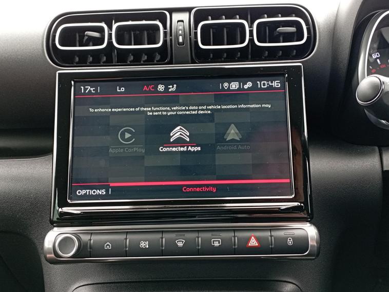 This 2022 Citroen C3 Aircross Shine is an exceptional example, boasting remarkably low mileage of just 7337 miles for its age. This compact SUV is powered by an efficient 1.2L Euro 6 petrol engine, offering a compelling blend of performance and economy. As a Shine trim, it comes equipped with a host of desirable features designed to enhance your driving experience, including Active Safety Brake with Forward Collision Alert for added peace of mind, and rear parking sensors with parking assistance to make manoeuvring effortless. Inside, you'll find automatic air conditioning for consistent comfort, and the Citroen Connected Nav system with 3D navigation, which seamlessly integrates Android Auto, Apple CarPlay, and Bluetooth connectivity. The vehicle also benefits from LED headlights for improved visibility.The highlights of this Citroen C3 Aircross demonstrate its superiority over other vehicles in its class. With an impressive fuel economy of 47 mpg, it offers significant savings on running costs. Its low CO2 emissions further contribute to its environmental credentials and lower tax bracket. Furthermore, its low insurance group rating means more affordable cover. For those who appreciate responsive driving, the 0-62mph acceleration in just 9.2 seconds provides a lively performance. This combination of efficiency, safety, technology, and performance makes the C3 Aircross Shine a truly stand out choice.