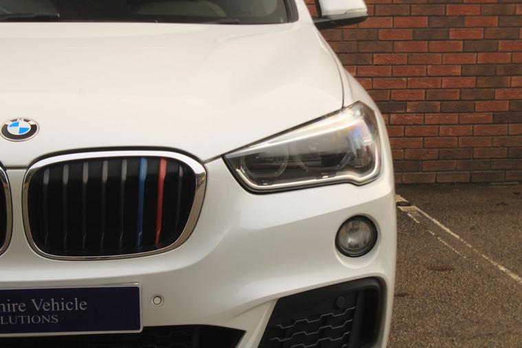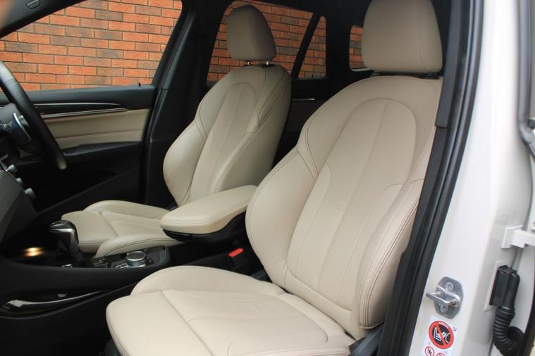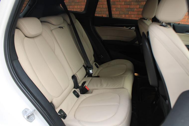 Finished in Mineral White metallic (£550) with full oyster perforated Dakota leather interior (£800). Features include BMW navigation plus pack (head-up display, navigation plus & full black panel display) (£1490), driving assistant plus pack (active cruise control, high beam assistant, speed limit display and lane departure warning system) (£1150), technology package (comfort access, Harman Kardon surround sound system & rear view camera) (£990), driver comfort package (ambient interior lighting & park assist) (£590), heated steering wheel (£160), 19” 572M double spoke alloy wheels (£595), front and rear park distance control, electrically adjustable front seats with driver memory (£650), heated front seats with electric lumbar support (£230), digital dual zone climate control with automatic air conditioning, enhanced Bluetooth connectivity with media streaming (£350), DAB digital radio, automatic LED headlights, rain sensor, electronic damper control (£150), BMW Connected Drive, automatically dimming and folding exterior mirrors (£420), sun protection glazing (£270), rear folding tray tables (£145), fine line stream wood interior trim (£120), matt aluminium roof rails, voice control, electric tailgate, multifunctional leather steering wheel with paddleshift, automatic transmission plus much more standard specification. This highly specified X1 25d has £8, 240 worth of options and is offered in excellent condition having covered 52600 miles from new. The