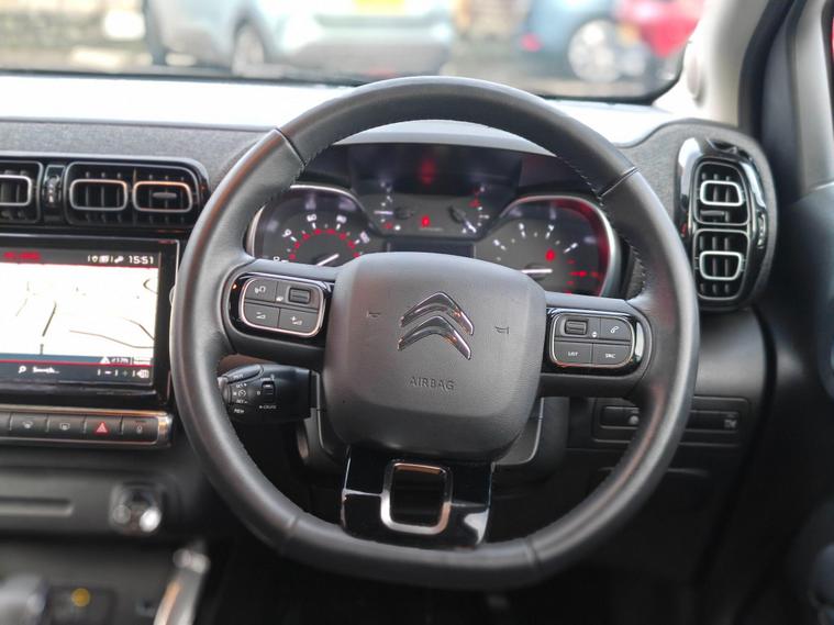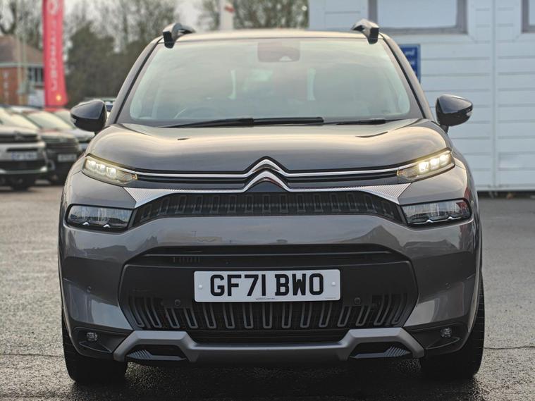 This 2022 Citroen C3 Aircross Shine Plus boasts exceptionally low mileage, having covered just 10170 miles, and has had only one owner from new. This stylish compact SUV is equipped with a responsive 1.2L petrol engine and meets Euro 6 emissions standards. Navigating and parking are made simple with the Top Rear Vision Reversing Camera and Front Parking Sensors, complemented by Citroen Connected Nav with 3D Navigation, which includes Android Auto and Apple CarPlay for seamless smartphone integration. You'll also appreciate the convenience of Keyless Entry and Start, along with Automatic Air Conditioning for a comfortable cabin environment.The C3 Aircross Shine Plus offers an impressive fuel economy of 47 mpg, indicating its efficiency on longer journeys. Its low CO2 emissions and low insurance group further contribute to its affordability and appeal. With a brisk acceleration of 0-62mph in just 9.2 seconds, this vehicle provides a capable and enjoyable driving experience, setting it apart from other cars in its class.