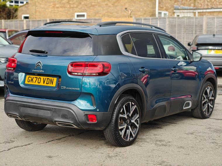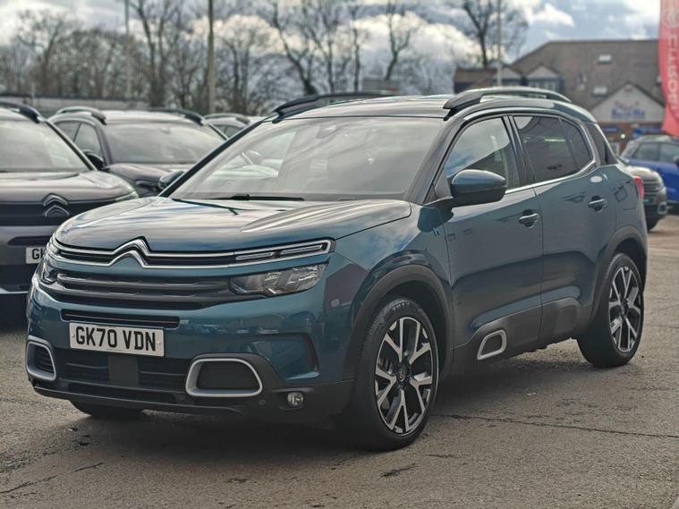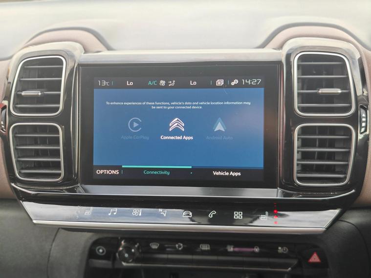 This 2020 Citroen C5 Aircross Shine Plus offers exceptionally low mileage for its year, having covered just 20922 miles. This Euro 6 compliant model features a 1.6L Petrol Plug-in Hybrid engine, combining efficiency with modern driving technology. The Shine Plus trim level comes equipped with a convenient Smartphone Charging Plate for wireless phone charging, an Acoustic Laminated Windscreen that includes rain and brightness sensors for automatic headlight activation, and a Reversing Camera displayed on the central screen to aid with parking. The LED headlights further enhance visibility and the vehicle's sophisticated appearance.The advanced features found on this Citroen C5 Aircross Shine Plus demonstrate its superior specification compared to other vehicles in its class. The automatic headlight activation, coupled with the rain and brightness sensors, ensures optimal visibility in varying conditions without driver input. The inclusion of a reversing camera and parking assistance makes manoeuvring simpler and safer. Furthermore, the plug-in hybrid powertrain offers an environmentally conscious and cost effective driving experience, making this a compelling choice for those seeking a well equipped and economical SUV.