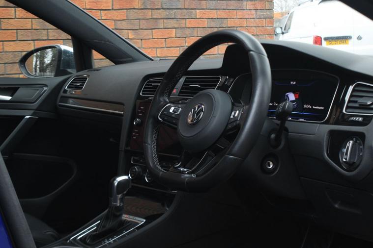 Finished in Lapiz Blue metallic (£630) with full black perforated Vienna leather interior (£1750). Features include sliding panoramic glass sunroof with powered sunblind (£995), rear view camera (£265), digital driver’s display, Apple CarPlay and Android Auto, Discover satellite navigation, 18” ‘Cadiz’ alloy wheels, front and rear park distance control, heated front sport seats with manual lumbar support, digital dual zone climate control with automatic air conditioning, Bluetooth connectivity with media streaming, DAB digital radio, automatic LED headlights, rain sensor, adaptive cruise control, selectable drive modes, heated electric folding exterior mirrors, rear tinted glass, roof rails, voice control, multifunctional leather steering wheel with paddleshift, automatic DSG transmission plus much more standard specification. This Golf R Estate has £3, 640 worth of options and is offered in excellent condition having covered 63600 miles from new. The car comes complete with a full service history consisting of the following 03/12/2018 at 12867 miles, 05/12/2019 at 17442 miles, 05/02/2021 at 21868 miles, 28/02/2021 at 30699 miles, 08/03/2023 at 40205 miles, 06/02/2024 at 49920 miles and 12/03/2025 at 60613 miles.
