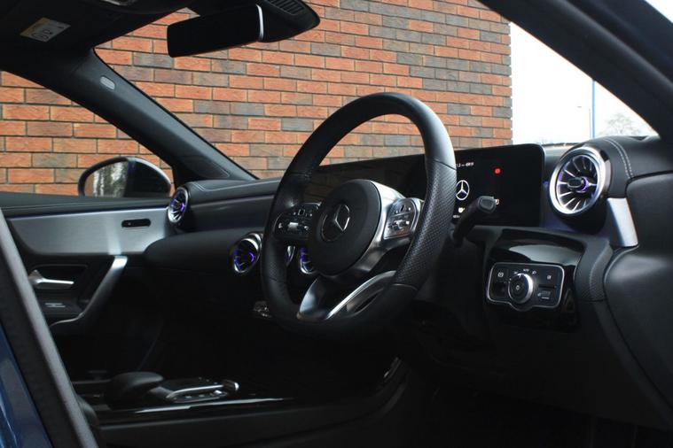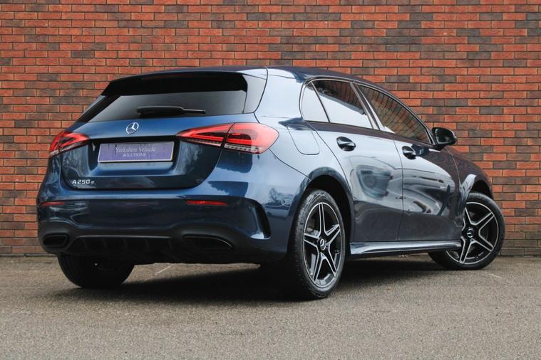 Finished in Denim Blue metallic (£595) with black leather and dinamica microfibre interior. Features include 10.25” widescreen media display with navigation, Apple CarPlay and Android Auto, night package, 18” AMG diamond turned five twin spoke alloy wheels, 360-degree parking aid with rear view camera, heated front sport seats, digital dual zone climate control with automatic air conditioning, Bluetooth connectivity with media streaming, DAB digital radio, LED high performance headlights, rain sensor, cruise control, dynamic select, parking package, lane keeping assist, brake assist, electric folding exterior mirrors, rear privacy glass, keyless go, interior ambient lighting, matrix look-light longitudinal grain aluminium interior trim, voice control, multifunctional leather steering wheel with paddleshift, automatic transmission plus much more standard specification. This A250e AMG Line Edition (Executive) is offered in excellent condition having covered 46000 miles from new by its 1 former keeper. The car comes complete with a full service history consisting of the following 03/10/2022 at 10938 miles, 28/09/2023 at 14172 miles, 21/10/2024 at 26579 miles and 30/06/2025.