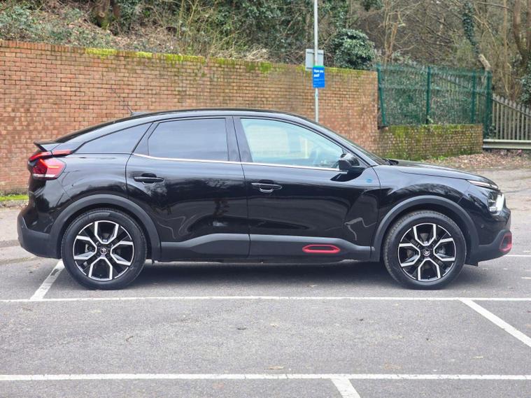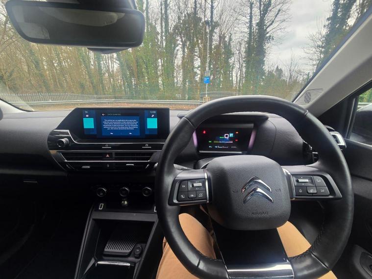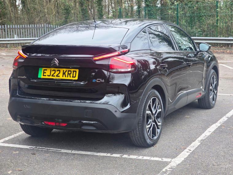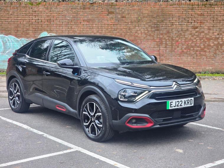 This 2022 Citroen e C4 Shine is an electric vehicle offering a compelling blend of style and modern technology. With a 50 kWh battery, it provides a maximum range of 217 miles when new, making it suitable for both daily commutes and longer journeys. Charging is convenient, with a full charge at home taking approximately 7 hours and 30 minutes using a 7kW charger, and a rapid charge to 80% achievable in just 30 minutes at a public charging station.The Shine trim level comes equipped with a range of notable features designed to enhance your driving experience. These include automatic dual zone air conditioning for perfect cabin climate, front and rear parking aids with lateral sensors and parking assistance for effortless manoeuvring, and a head up display to keep essential information in your line of sight. The 10 inch high resolution touchscreen user interface seamlessly integrates Android Auto and Apple CarPlay, alongside Bluetooth connectivity, while keyless entry and start add a touch of everyday convenience.