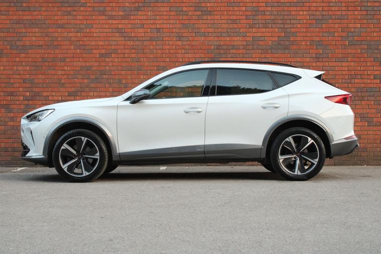 Finished in Nevada White metallic with black PVC and cloth interior. Features include digital driver’s display, Apple CarPlay and Android Auto, satellite navigation, heated steering wheel, 18” Performance alloy wheels, 360 degree park distance control with park assist, front sport seats, digital three zone climate control with automatic air conditioning, Bluetooth connectivity with media streaming, DAB digital radio, automatic LED headlights, rain sensor, adaptive cruise control, safety and driving pack M, lane assist, Cupra drive modes, heated electric folding exterior mirrors, tinted rear glass, keyless entry, wireless phone charging, copper and aluminium interior detailing, LED taillights with dynamic indicators, illuminated front door sills, roof rails, voice control, multifunctional leather steering wheel with paddleshift, automatic transmission plus much more standard specification. This Cupra Formentor VZ1 is offered in excellent condition having covered 66000 miles from new by its 1 owner. The car comes complete with a full Cupra main dealer service history consisting of the following 30/09/2023 at 19194 miles, 10/09/2024 at 37948 miles and 07/06/2025 at 55866 miles.