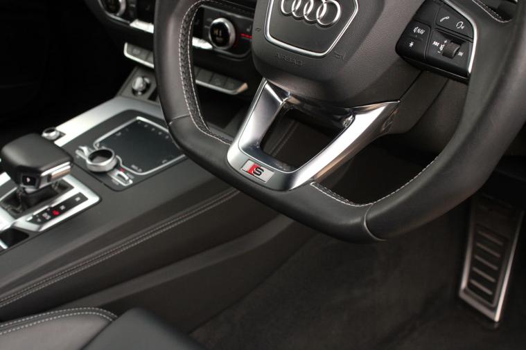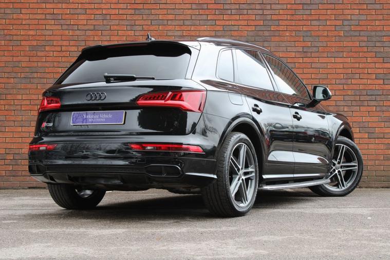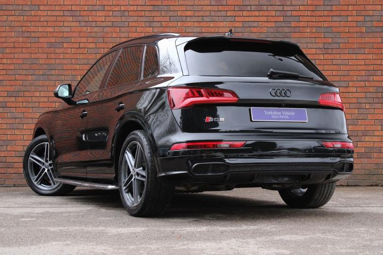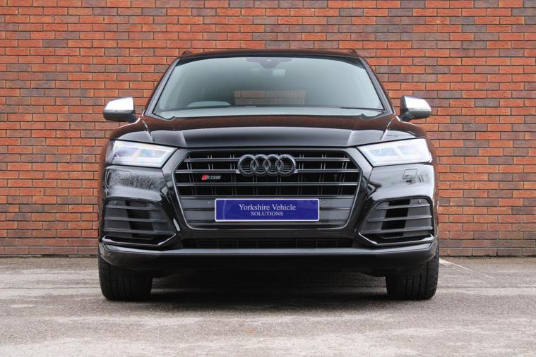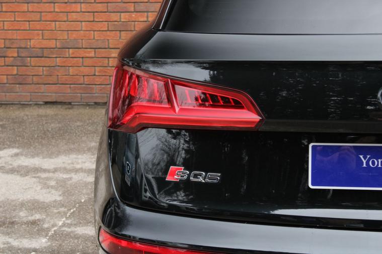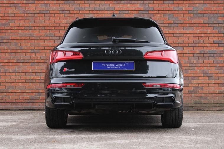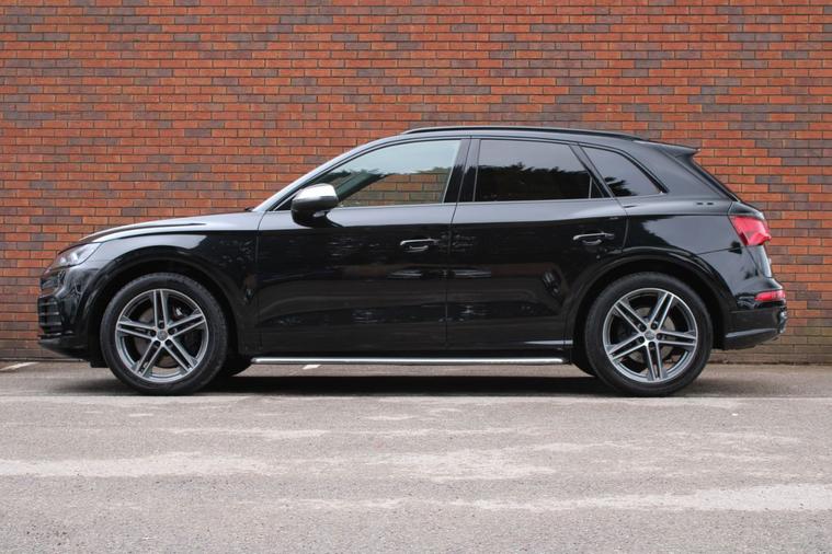 Finished in Mythos Black metallic with full black fine Nappa leather interior. Features include comfort and sound package (Bang & Olufsen premium sound system, rear view camera, Audi advanced key & extended multi-coloured LED lighting pack), technology package (Audi virtual cockpit & Audi phone box with wireless charging), MMI Navigation Plus, 20” five twin spoke star design alloy wheels, Audi parking system plus, heated electric front sport seats with massage function, deluxe three zone climate control with automatic air conditioning, Audi Smartphone Interface, Bluetooth connectivity with media streaming, DAB digital radio, automatic LED headlights with high beam assist, rain sensor, cruise control, Audi drive select with dynamic suspension, heated electric folding exterior mirrors, rear privacy glass, matt brushed aluminium inlays, black brake calipers with S logo, illuminated S door sills, roof rails, running boards, voice control, electric tailgate, multifunctional flat bottomed leather steering wheel with paddleshift, automatic Tiptronic transmission plus much more standard specification. This SQ5 is offered in excellent condition having covered 83300 miles from new by its 1 former keeper. The car comes complete with a service history consisting of the following - 12/11/2020 at 9190 miles, 21/12/2022 at 24941 miles, 30/08/2024 at 56120 miles, 10/03/2025 at 65835 miles, 15/09/2025 at 76518 miles and 23/01/2026 at 82135 miles.